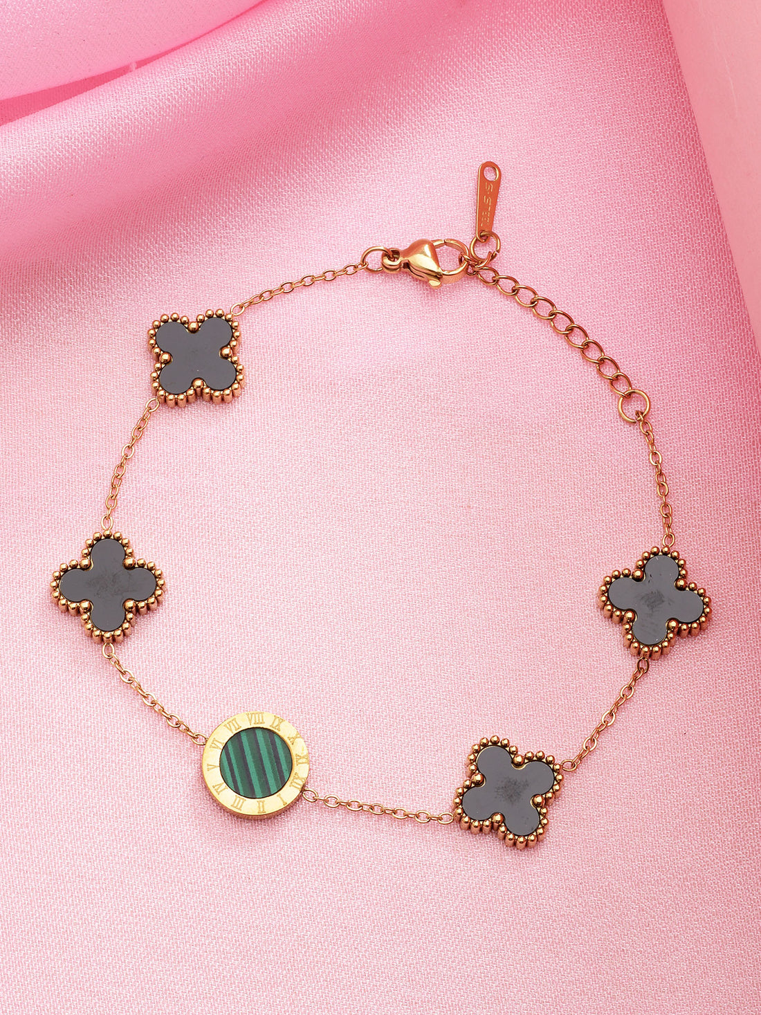 Bohey by KARATCART Gold-Plated Green and Black Charm Bracelet for Women