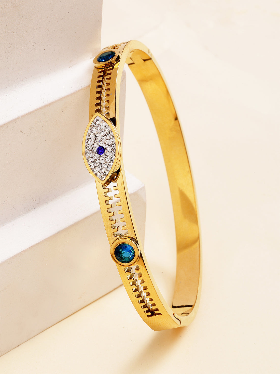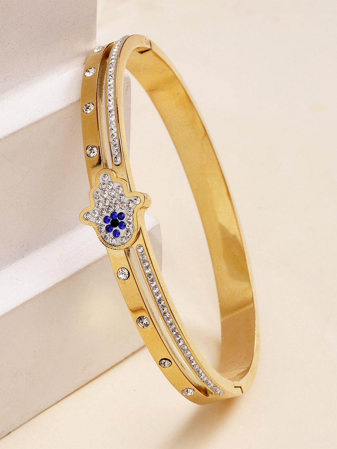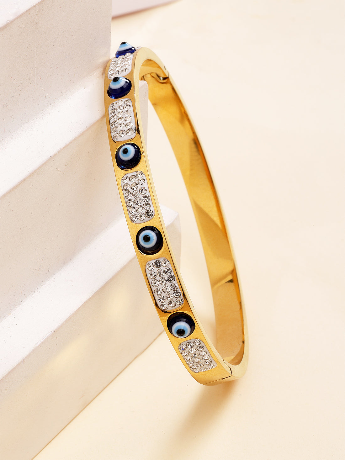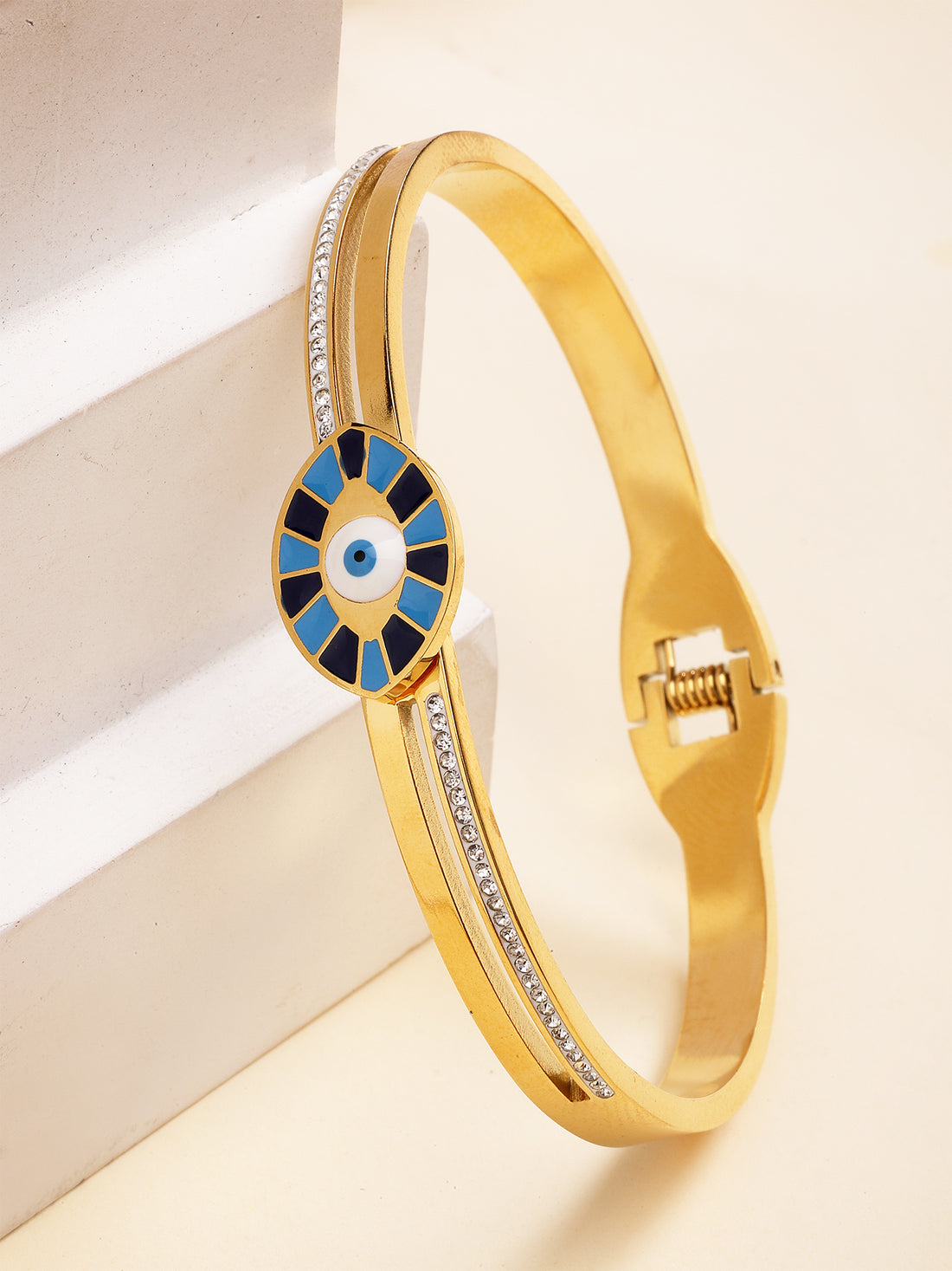 Bohey by KARATCART Gold-Plated Evil Eye Cubic Zirconia Bangle-Style Bracelet for Women