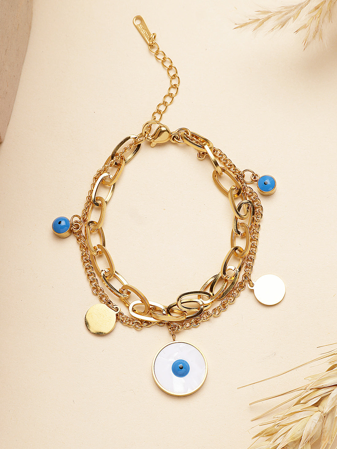 Bohey by KARATCART Gold Plated Evil Eye Charm Chain Bracelet for Women