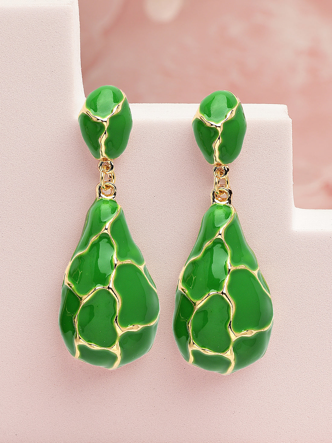 Bohey by KARATCART Green Enamel Gold Plated Dragon Egg Drop Earrings for Women