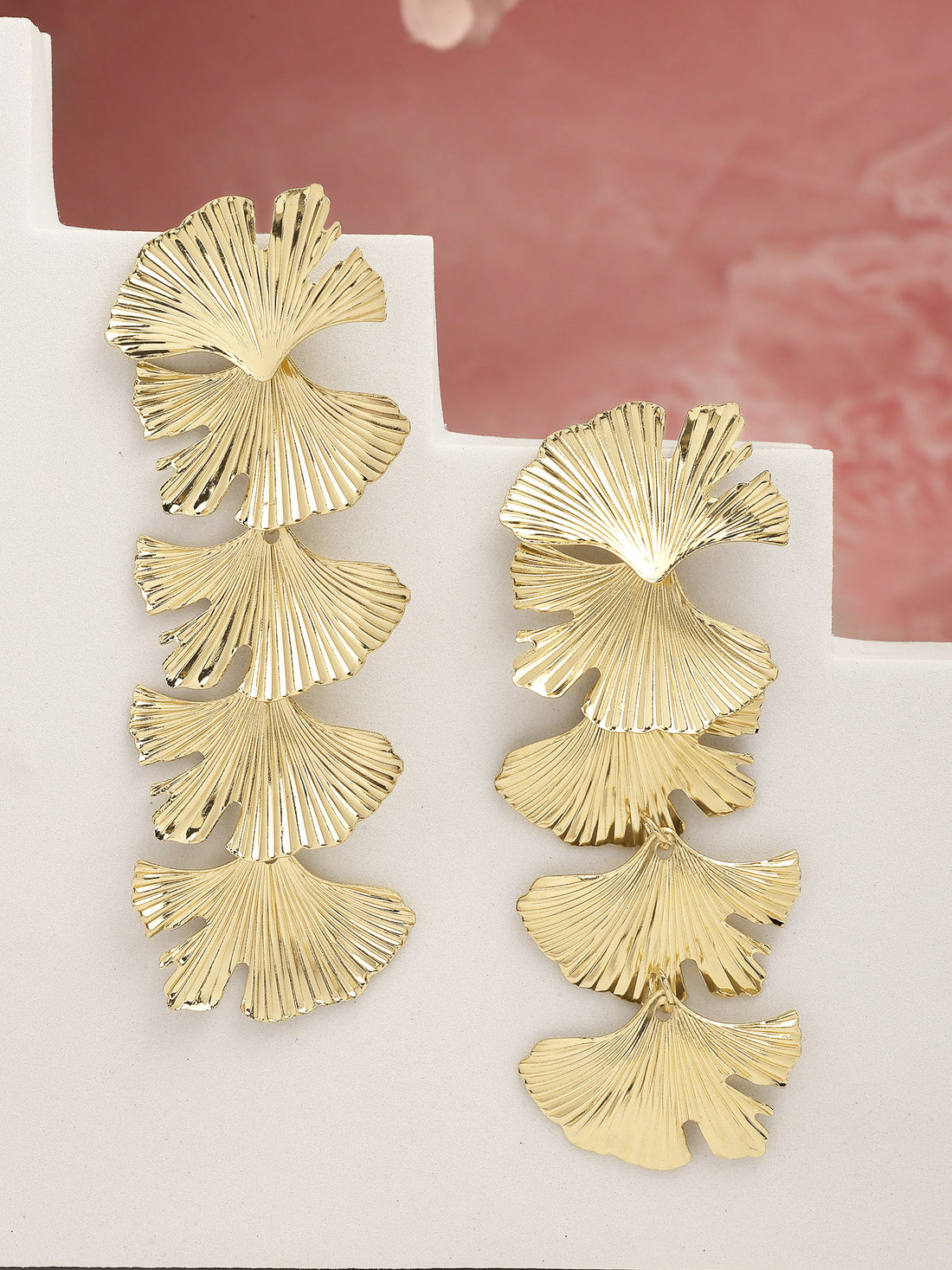 Bohey by KARATCART Gold Plated Leaf Design Drop Earrings for Women