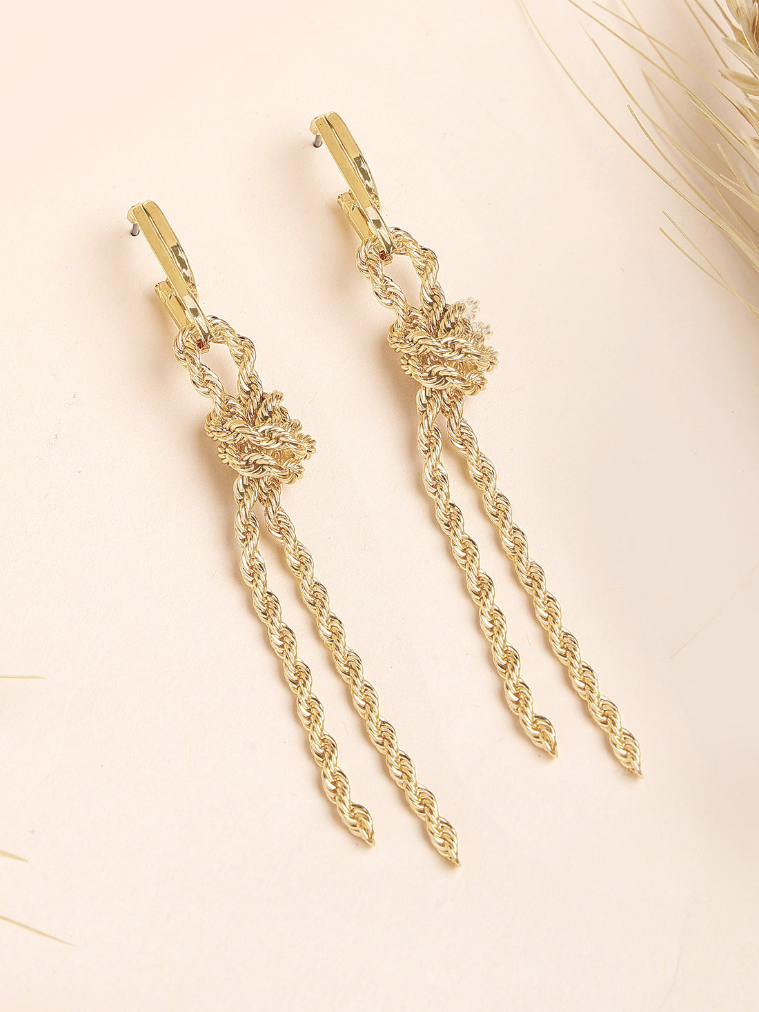Bohey by KARATCART Gold Plated Twisted Drop Earrings for Women