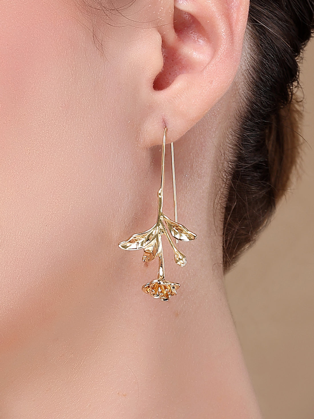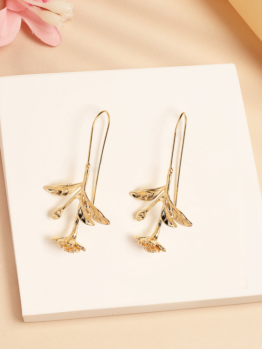 Bohey by KARATCART Gold Plated Floral Drop Earrings for Women