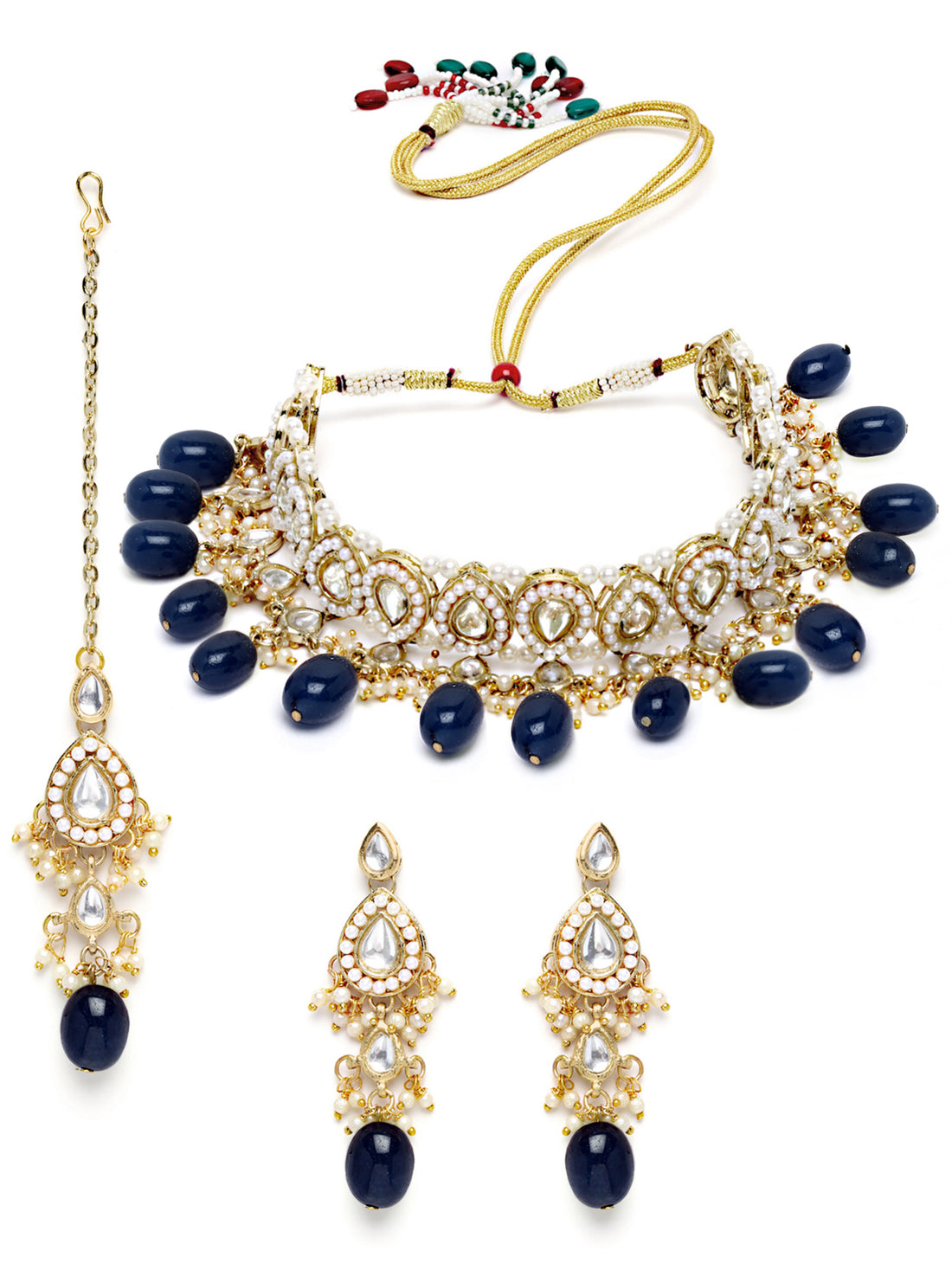 Karatcart Gold Plated Blue Tumble Choker Necklace Set for Women
