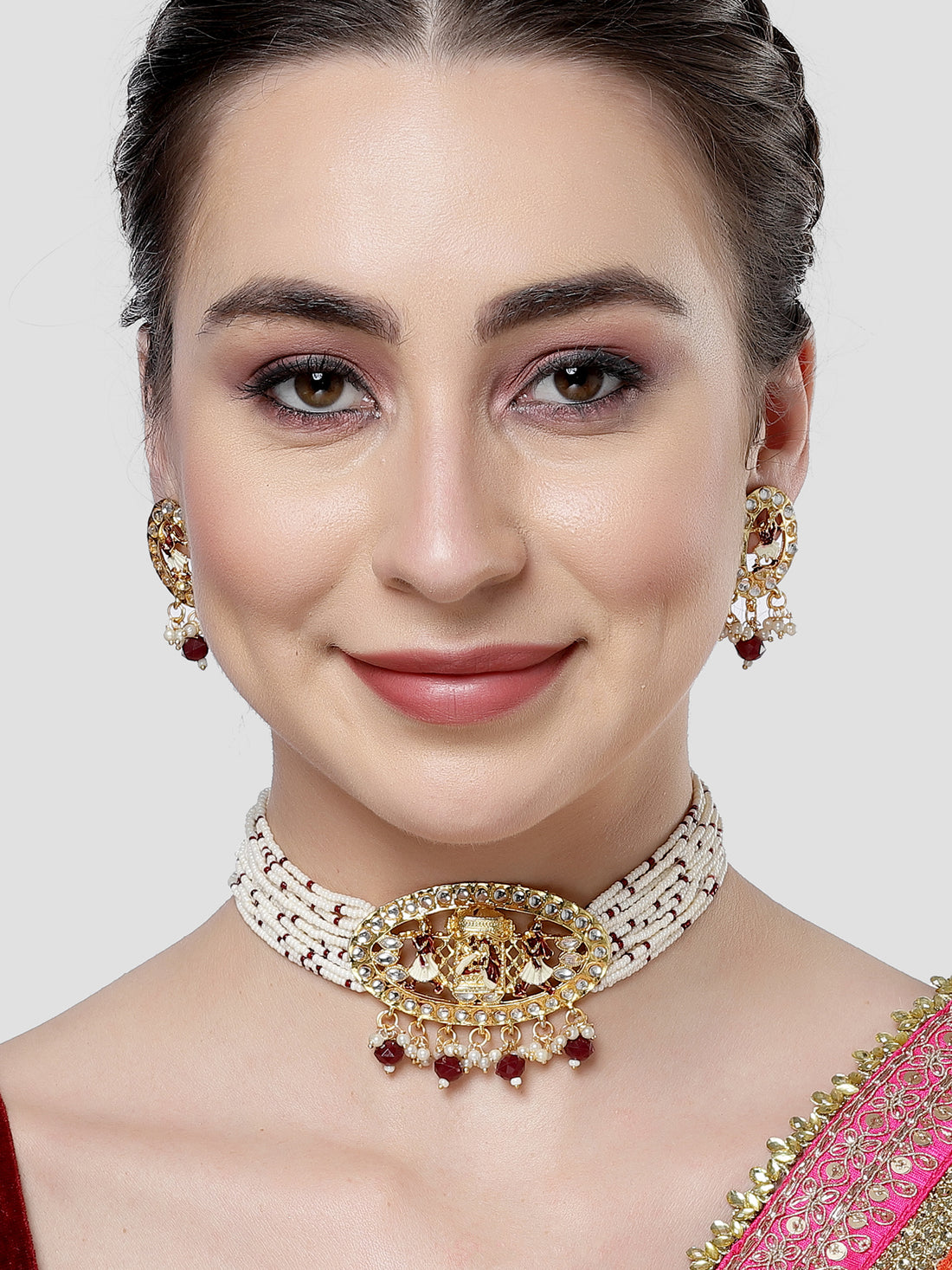 Karatcart Gold Plated Maroon Dulhan Doli Design Choker Necklace Set for Women