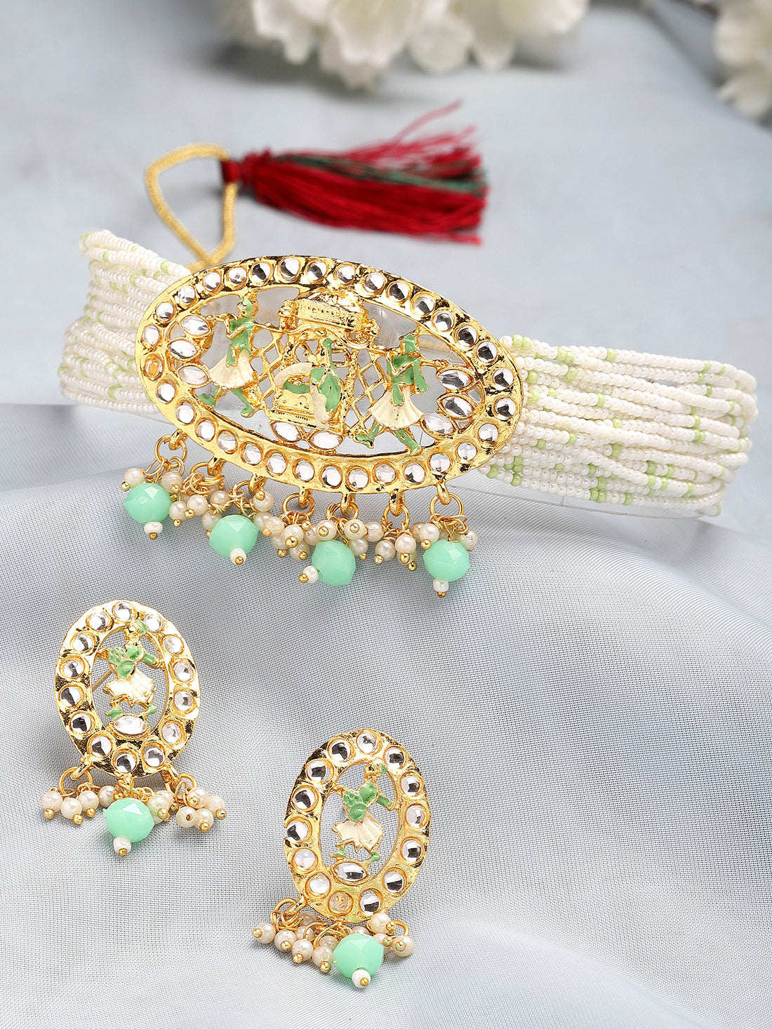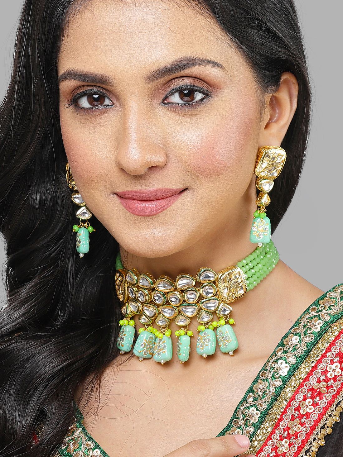 Karatcart Gold Plated Light Green Dulhan Doli Design Choker Necklace Set for Women