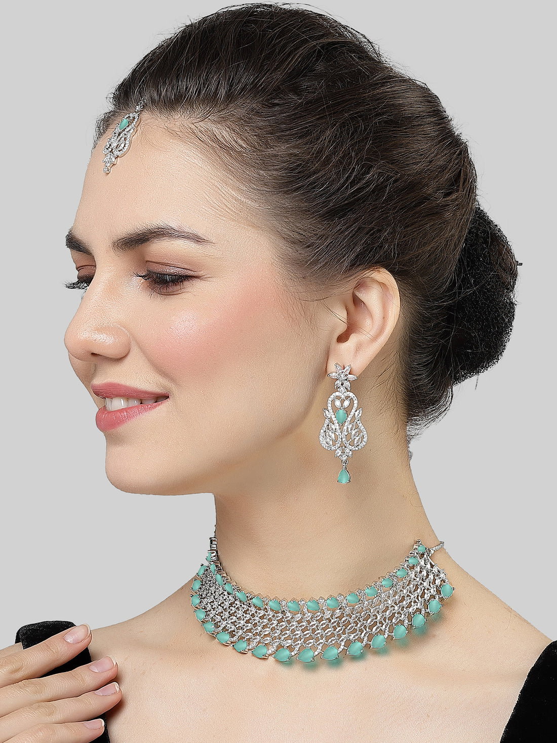 Karatcart Light Green Cubic Zirconia Silver Plated Choker Necklace Set for Women