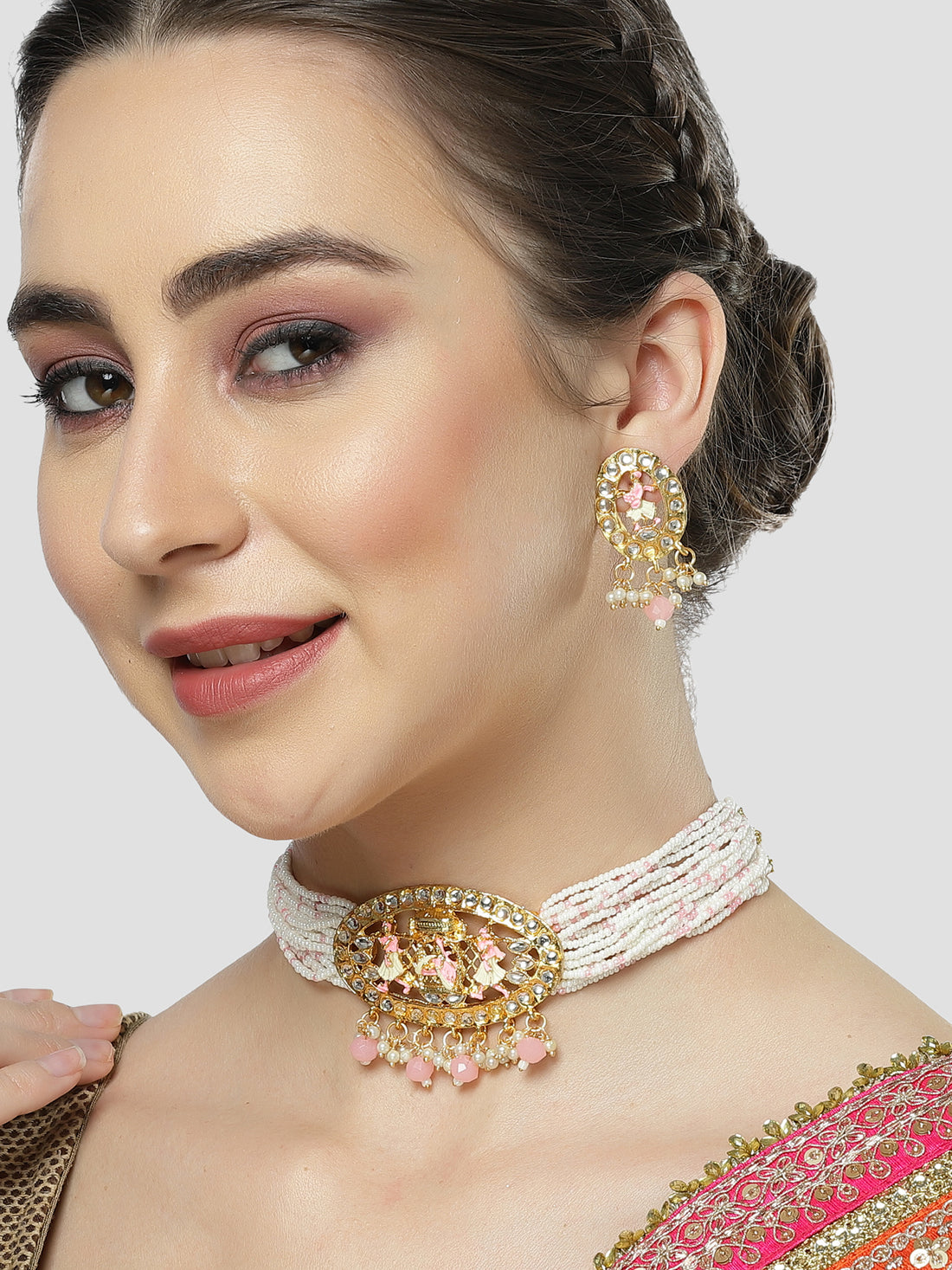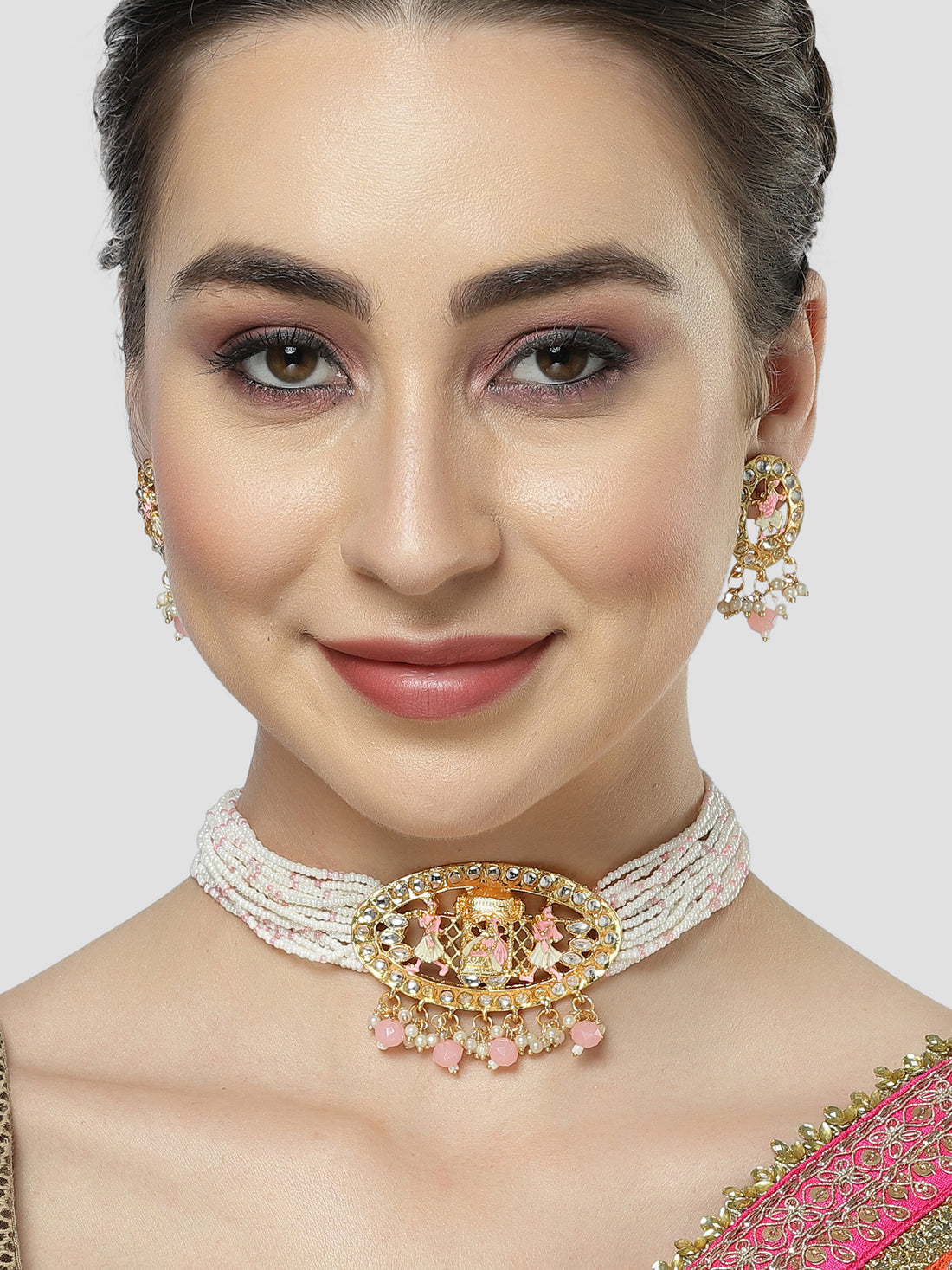 Karatcart Gold Plated Light Pink Dulhan Doli Design Choker Necklace Set for Women