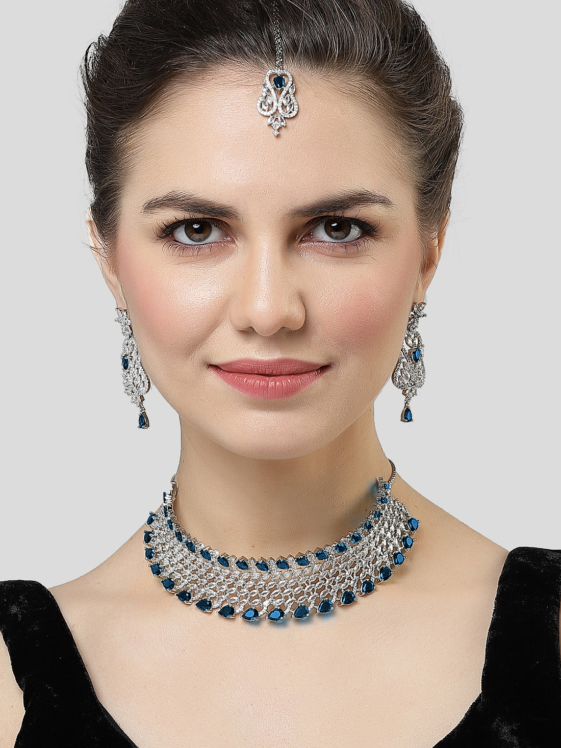 Karatcart Blue Cubic Zirconia Silver Plated Choker Necklace Set for Women