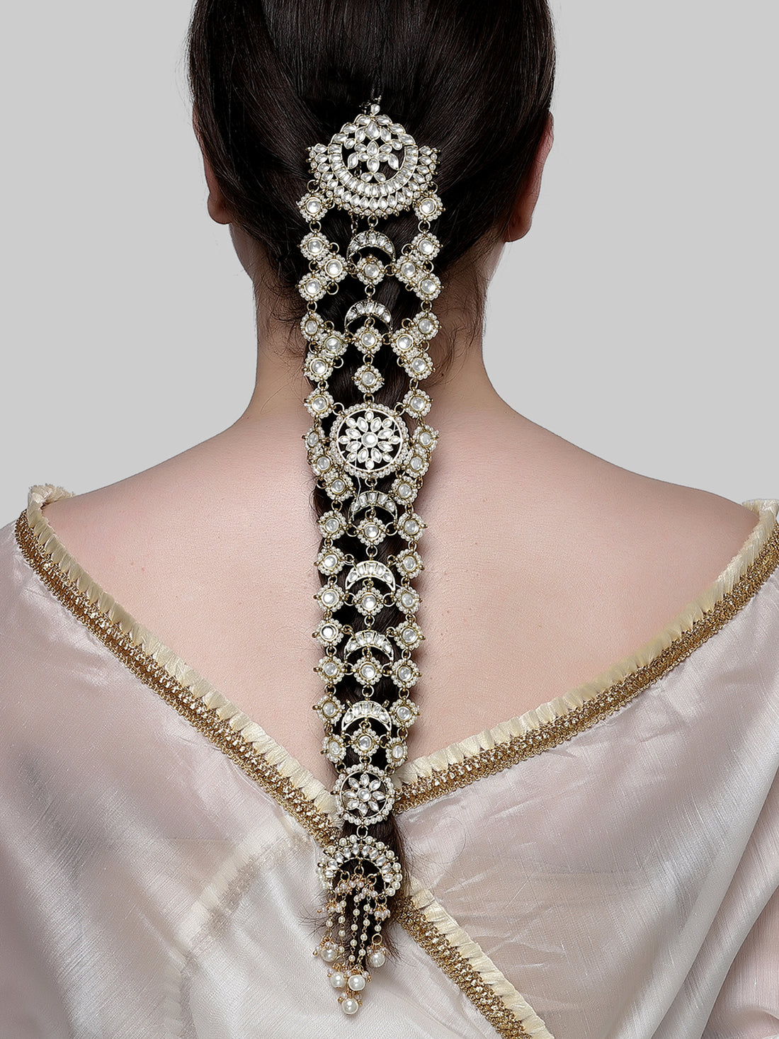 Karatcart Gold Plated Handcrafted Kundan Bridal Wedding Hair Braid Choti