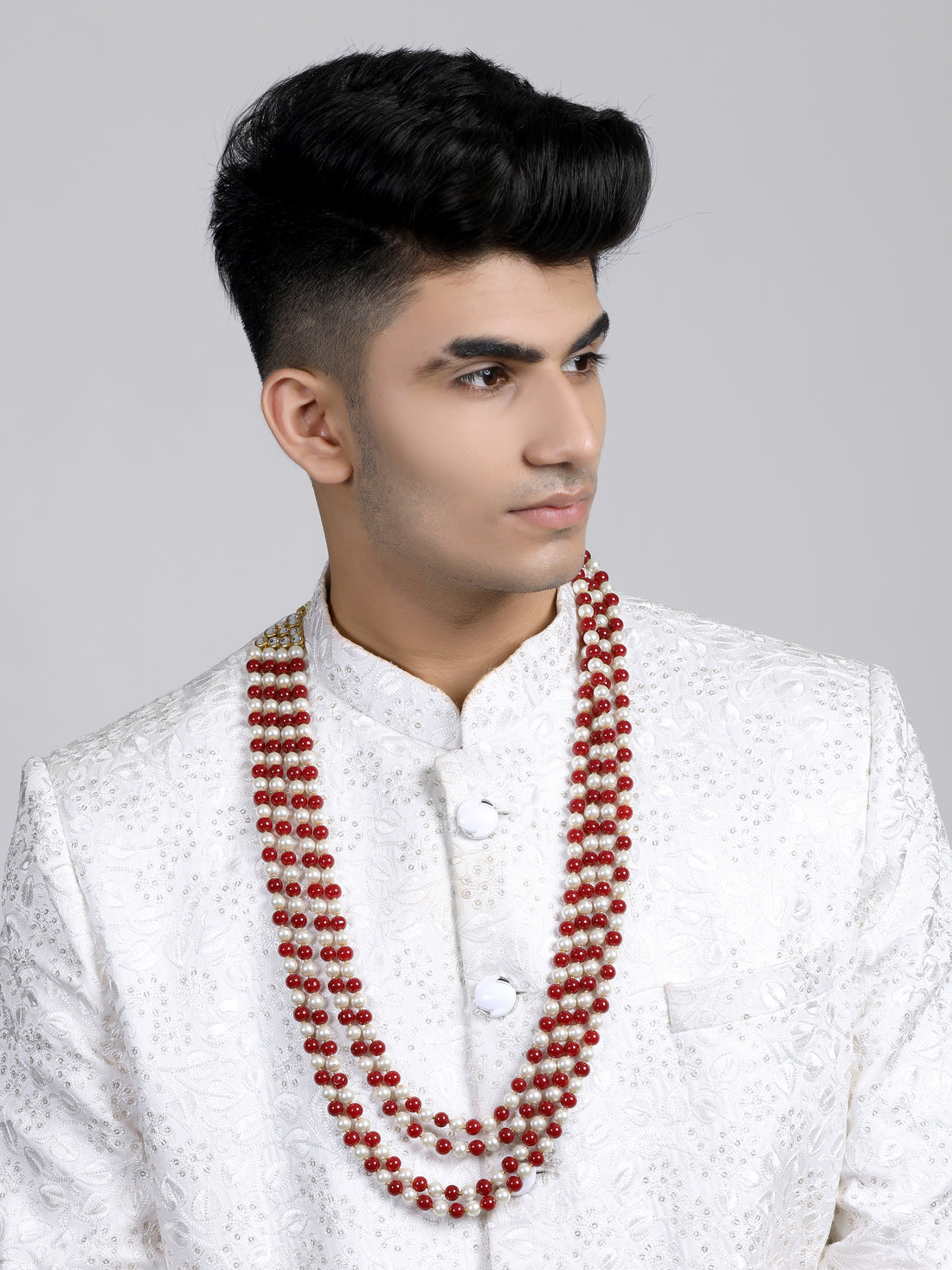 Traditional Red and White Beads Maharaja Moti Mala for Men