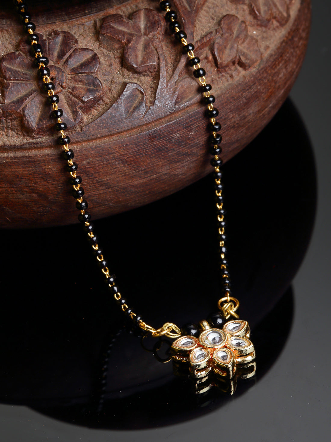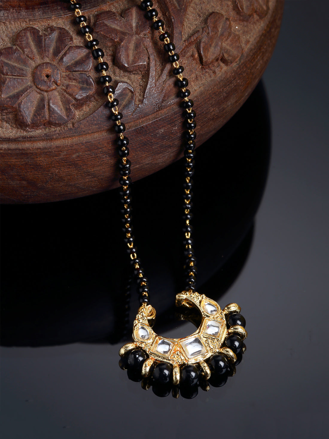 Gold Plated Kundan Mangalsutra Black Bead Golden Chain