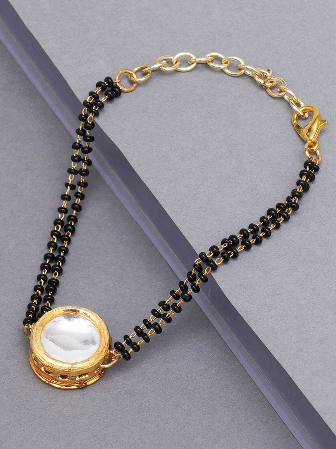 PRODUCT DETAILS Gold-toned and black handcrafted charm braceletMaterial and stone type: alloy with kundanPlating: gold-platedClosure:...
