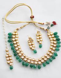 Karatcart Gold Plated Green Tumble Moon Shape Kundan Neckalce Set. It is made with high-quality...