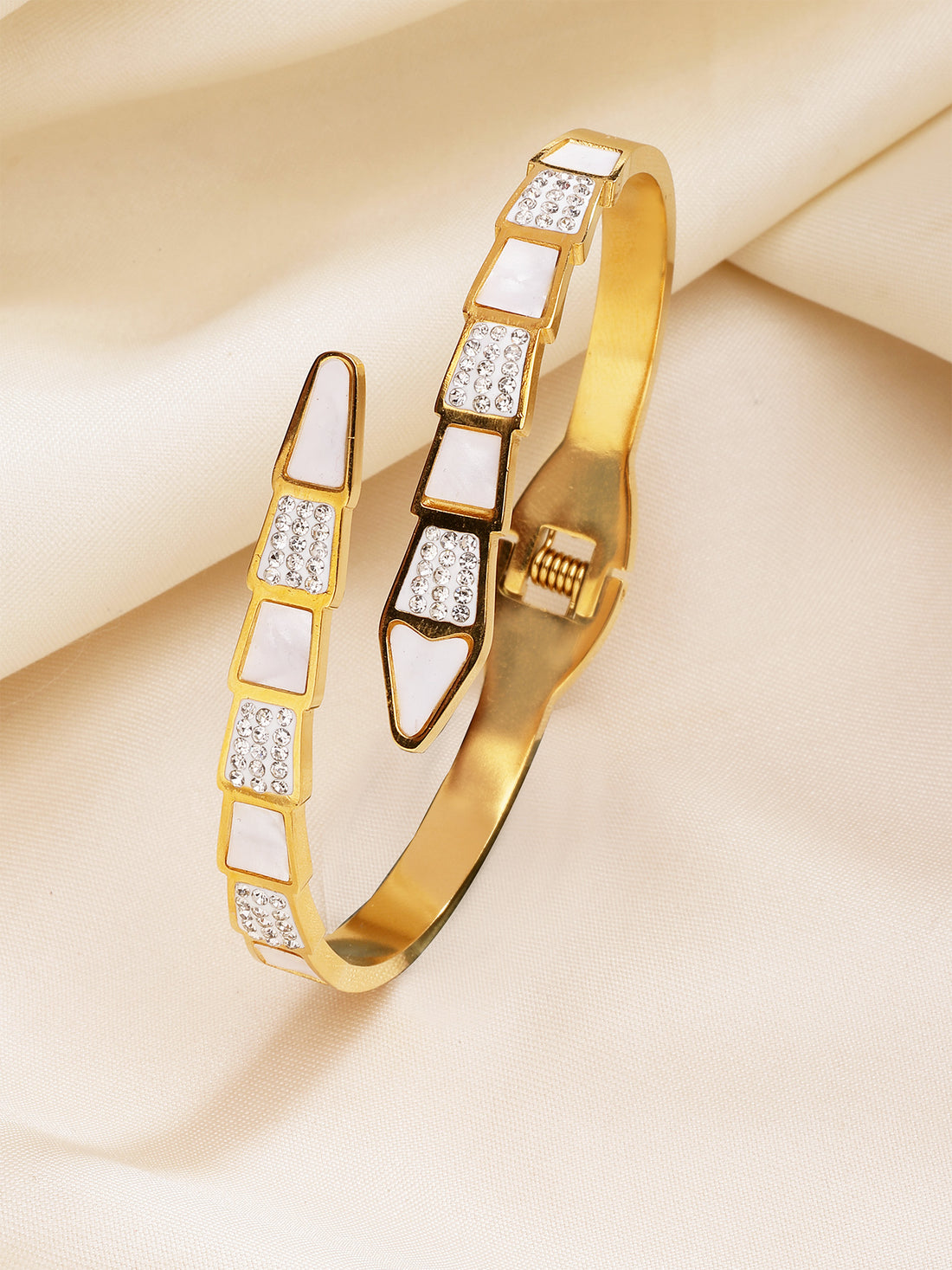 Bohey by KARATCART Gold-Plated White Cubic Zirconia Studded Bangle-Style Bracelet for Women