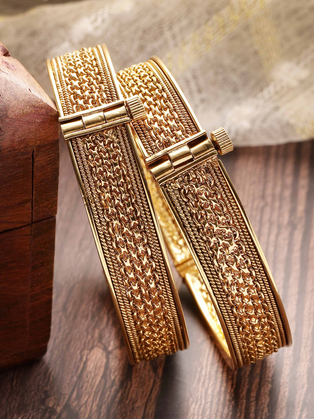 Karatcart Set of 2 Gold Plated Interlock Chain Design Bangles for Women