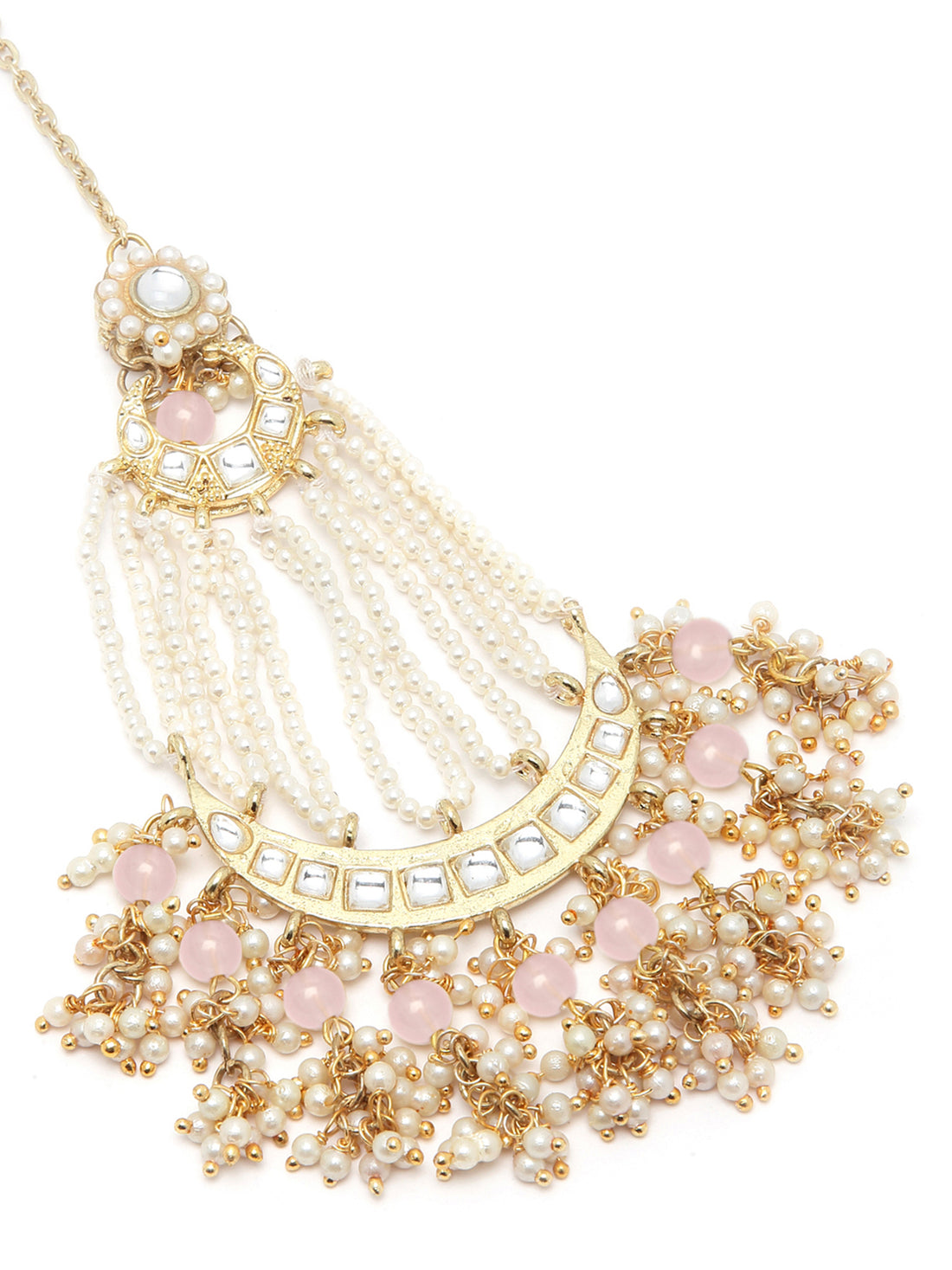Karatcart Gold Plated Handcrafted Pink Bead Kundan Passa for Women