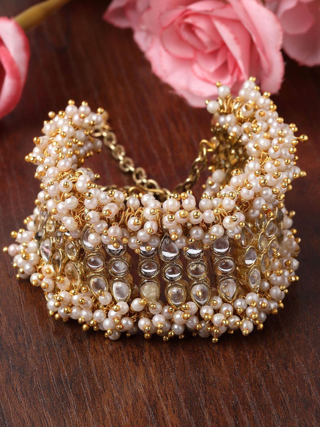 Karatcart Gold-Plated Pearl Beaded Kundan Bracelet for Women