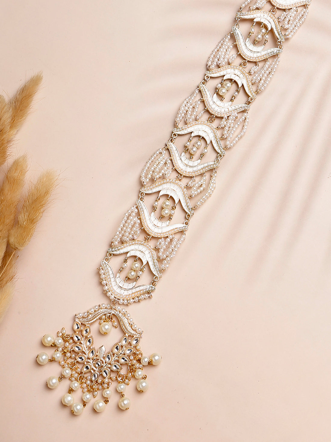 Karatcart Gold Plated Kundan and Pearl Bridal Wedding Hair Braid Choti
