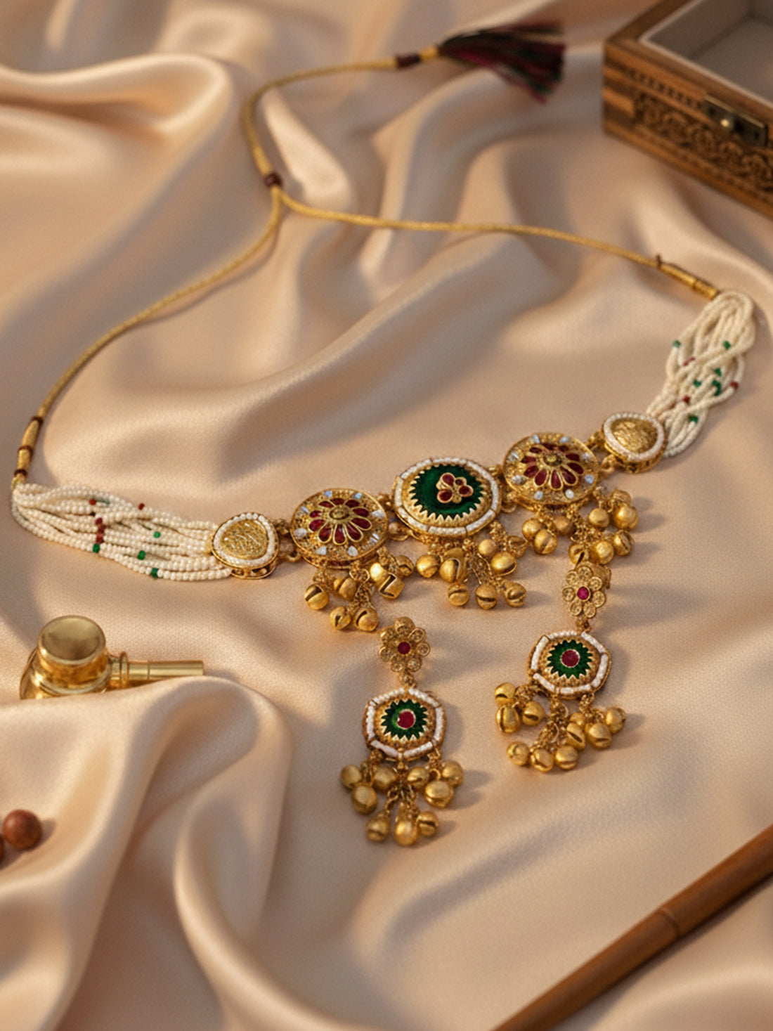 KARATCART Elegant Pearl Beaded Ethnic Gold-Plated Choker Jewellery Set for Women