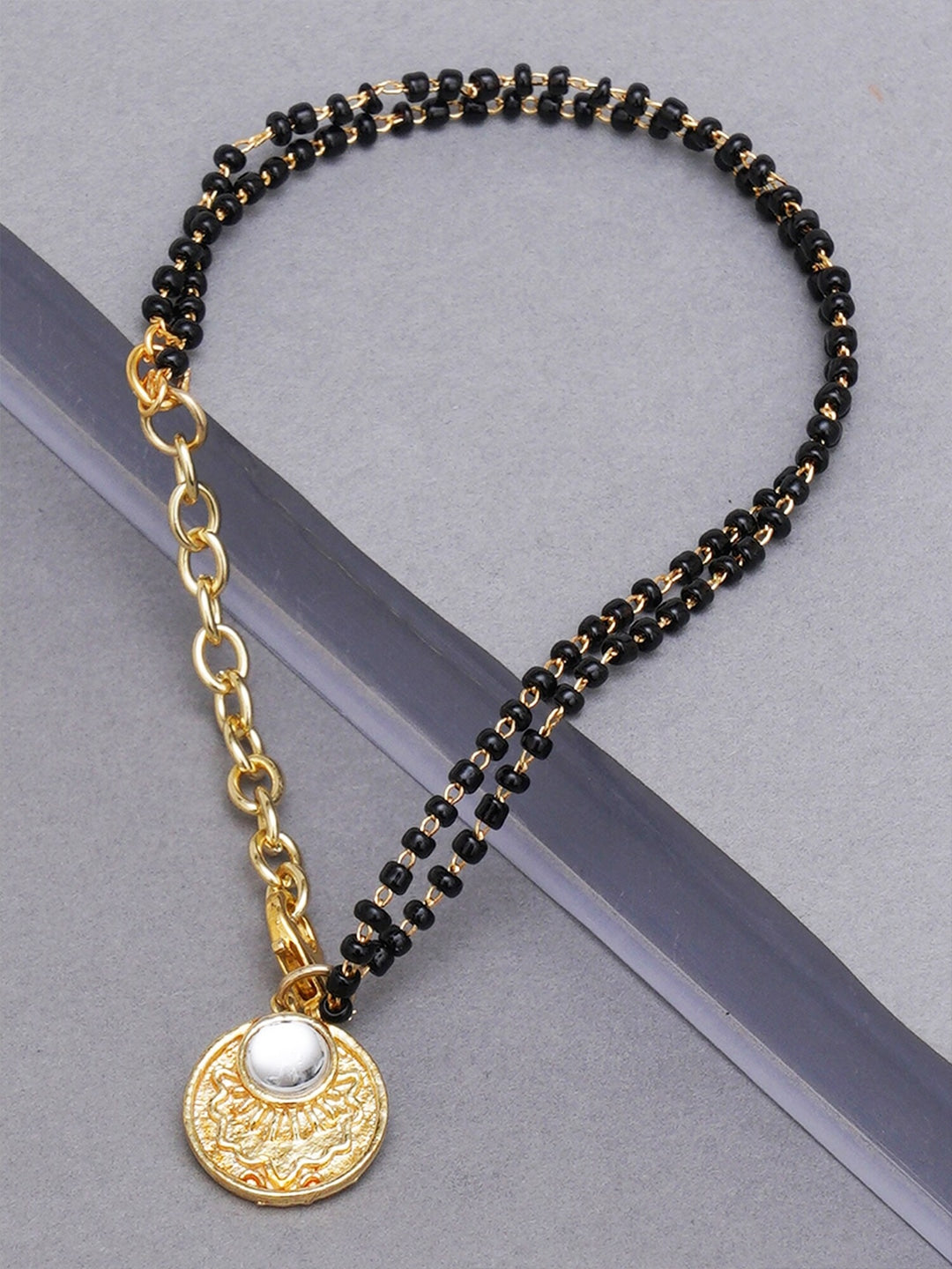 Women Gold-Plated & Black Charm Mangalsutra Bracelet