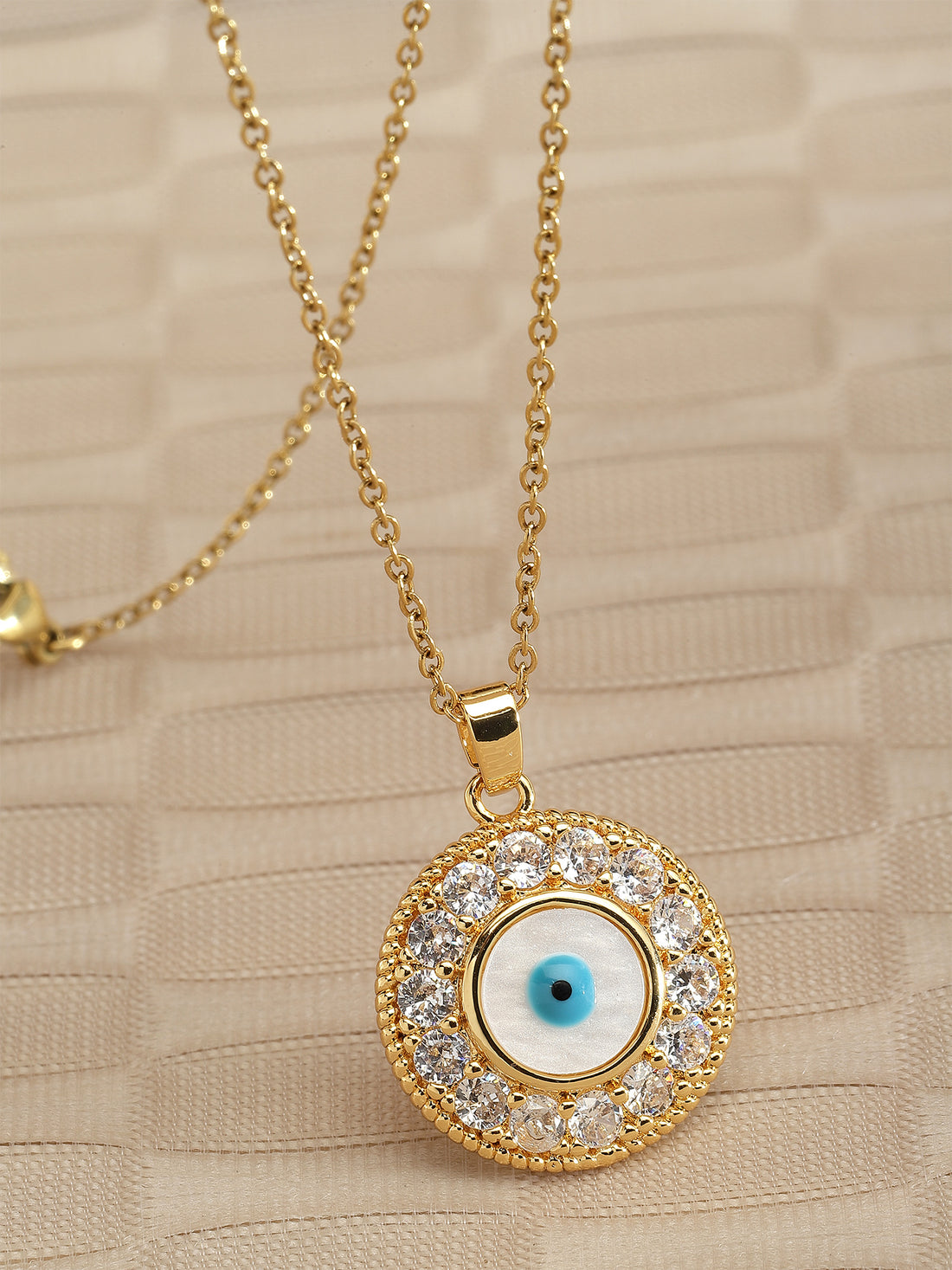 Bohey by KARATCART Gold Plated Round Evil Eye Protection Pendant for Women