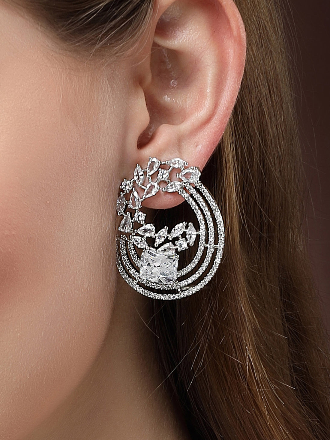 Karatcart White Cubic Zirconia Studded Silver Plated Stud Earrings for Women