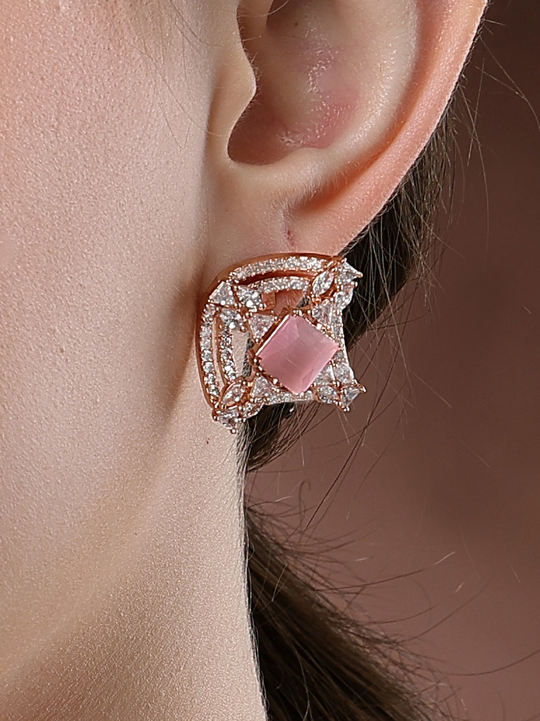 Karatcart Rose Gold Plated Pink Stones AD Stud Earrings for Women
