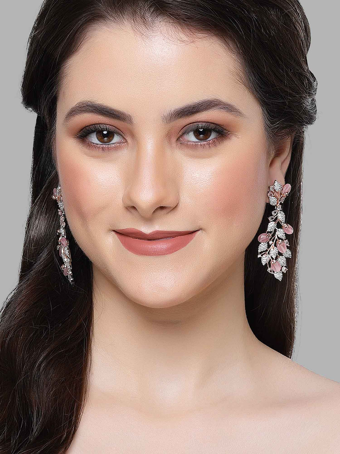 Karatcart Rose Gold Plated Floral Design Pink CZ Stone Dangler Earrings for Women