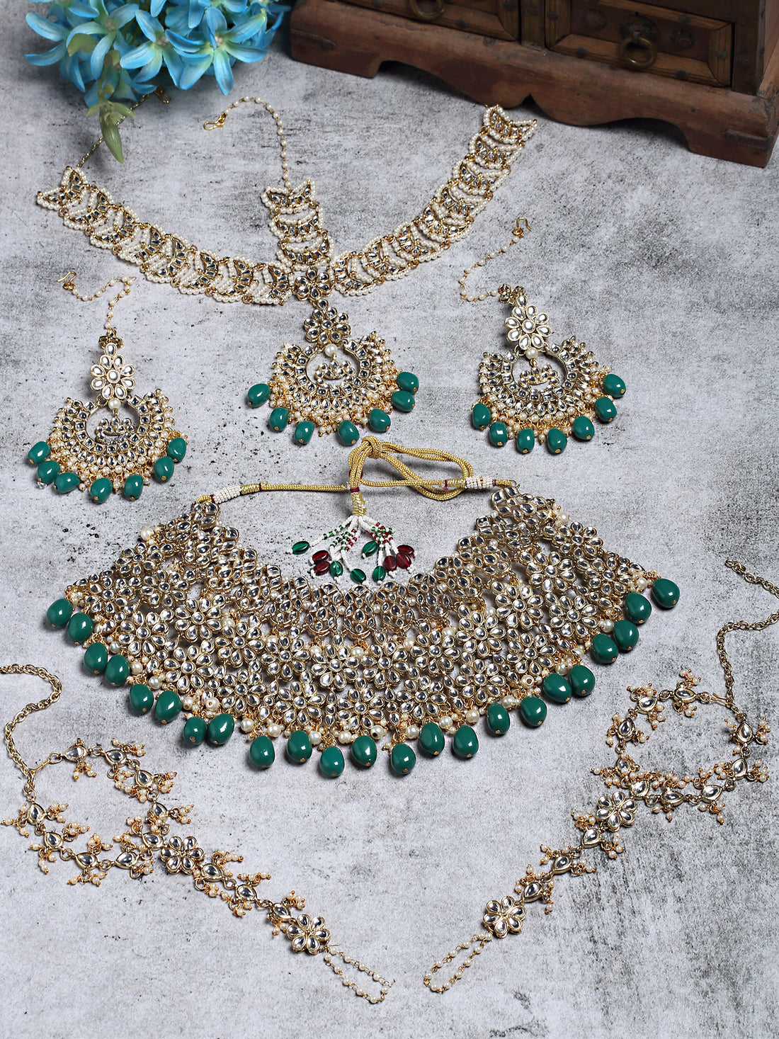 Karatcart Gold Plated Green Tumble Floral Kundan Bridal Necklace Set for Women