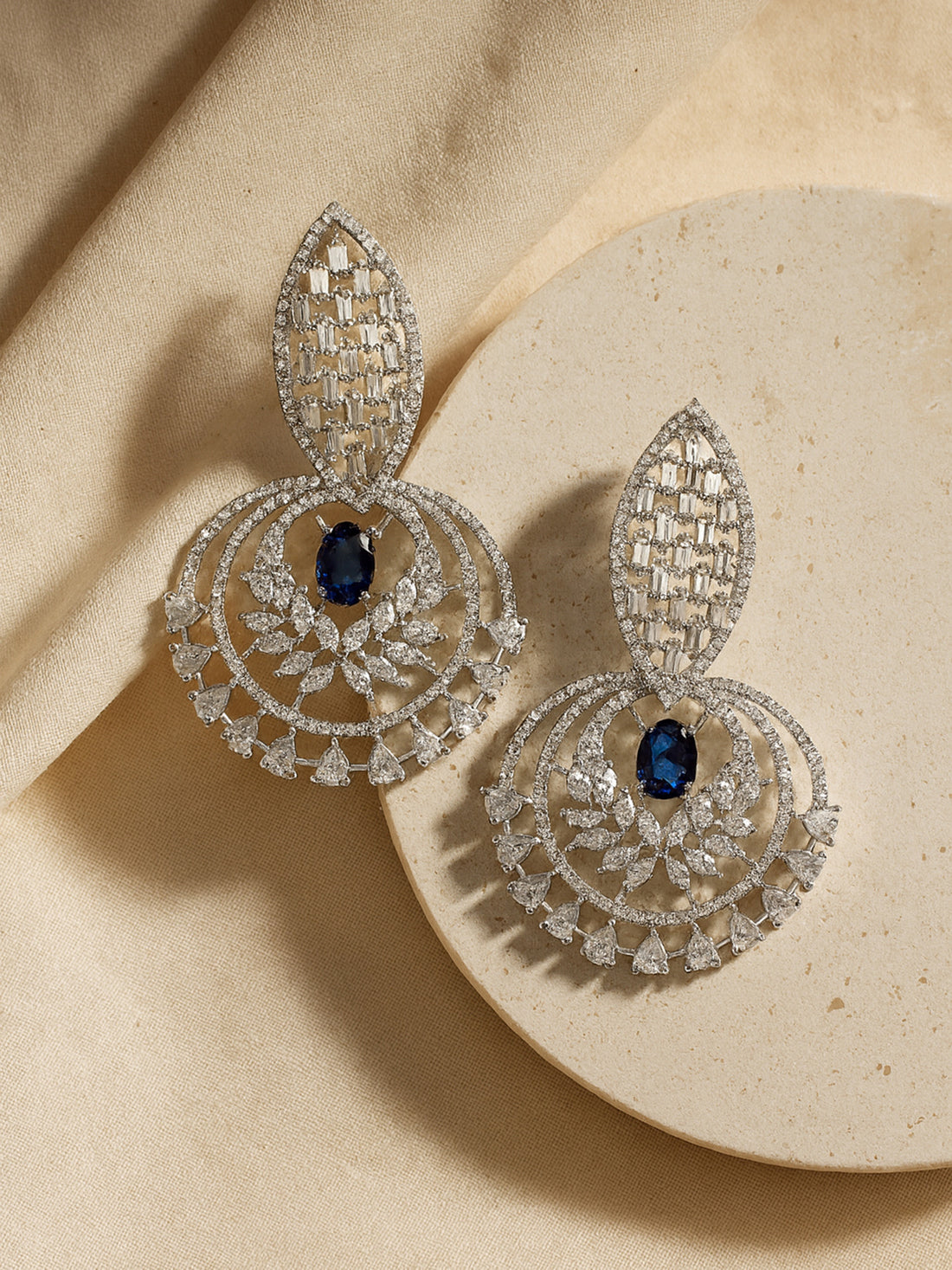 Karatcart Silver Plated Blue Cubic Zirconia Studded Drop Earrings for Women