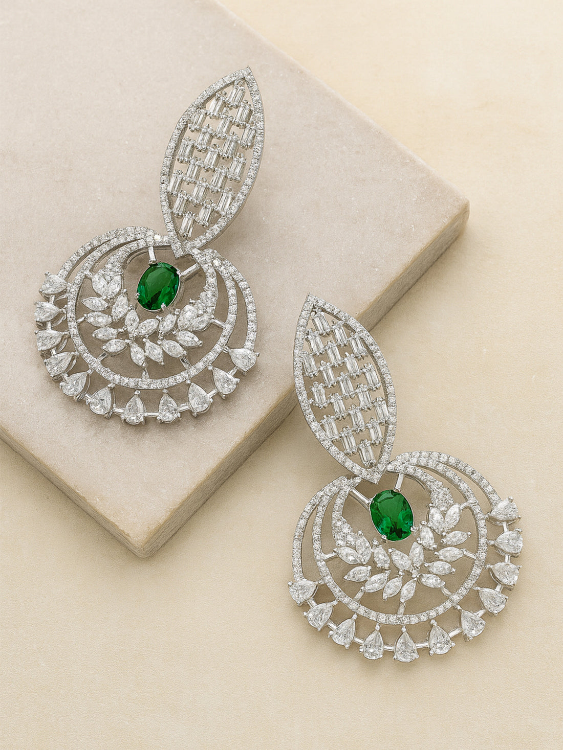 Karatcart Silver Toned Green Cubic Zirconia Studded Drop Earrings for Women