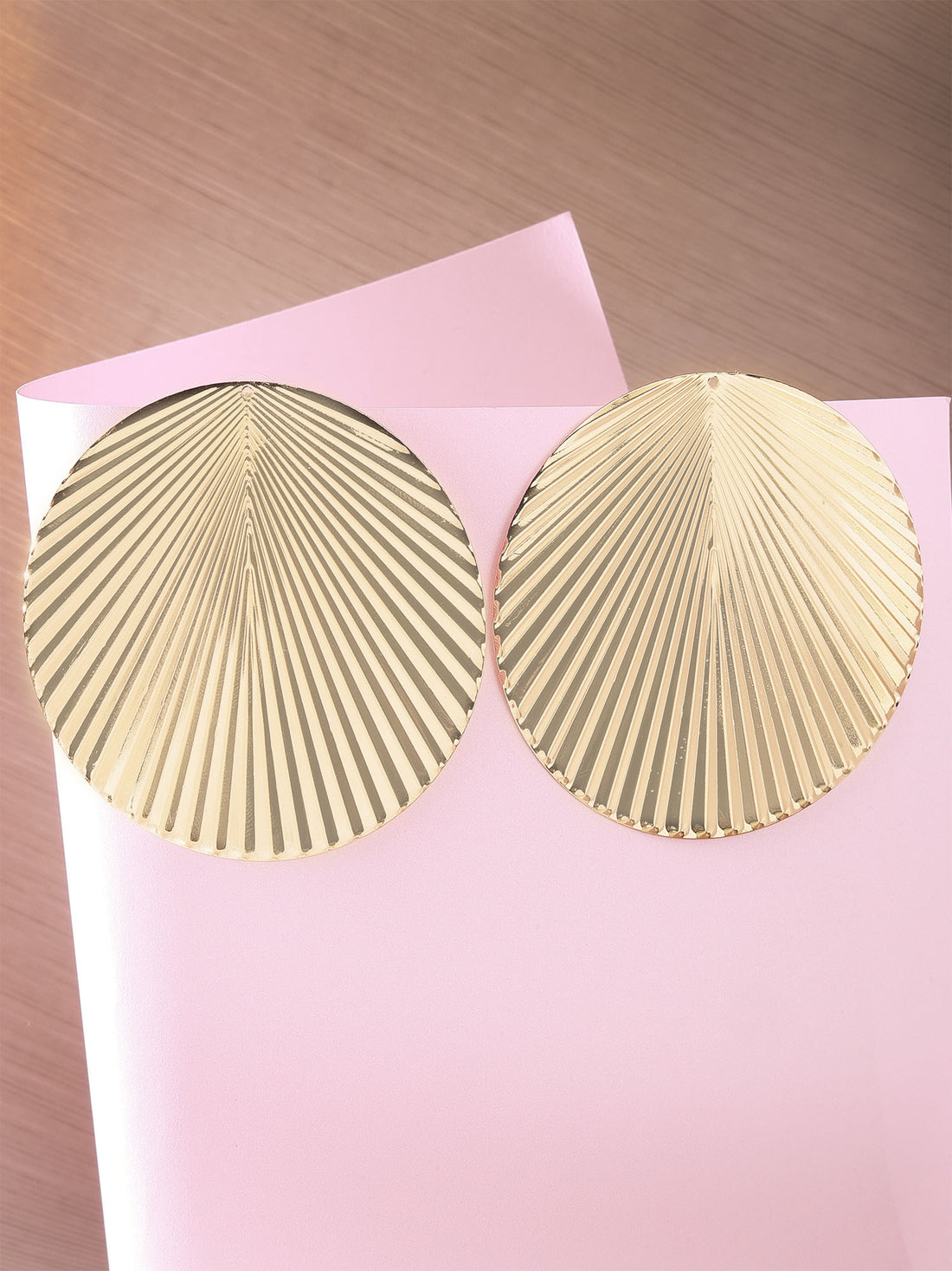 Bohey by KARATCART Gold Plated Strip Pattern Round Large Stud Earrings for Women