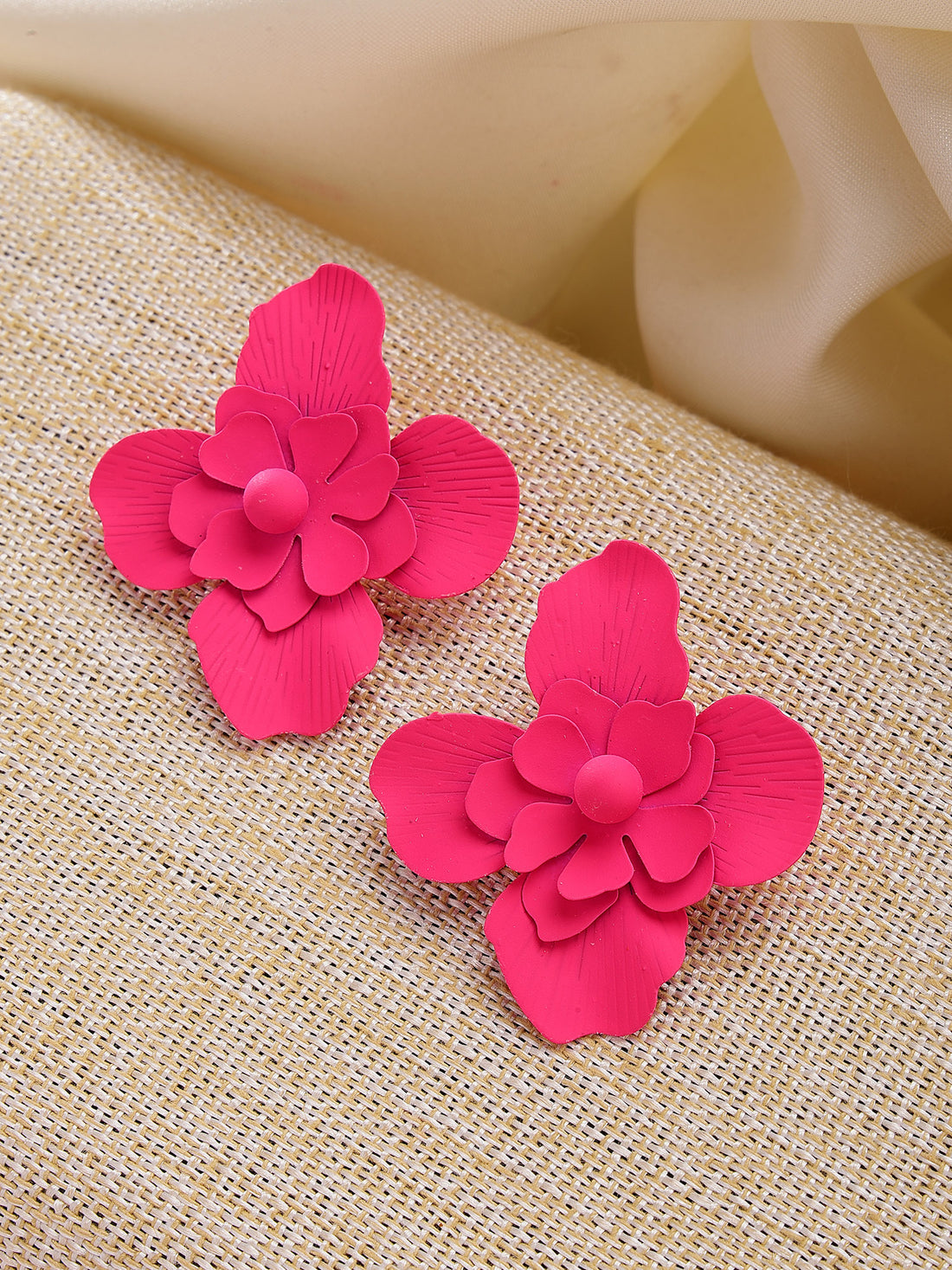 Bohey by KARATCART Pink Floral Stud Earrings for Women