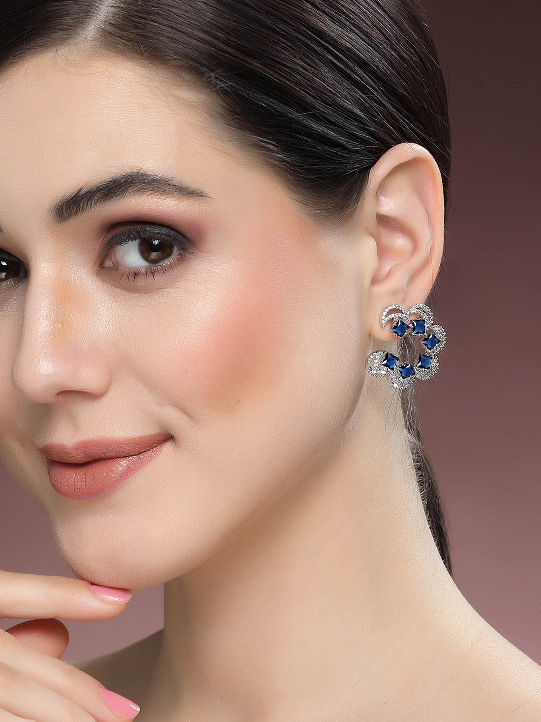 Karatcart Silver-Plated Blue Cubic Zirconia Stud Earrings for Women