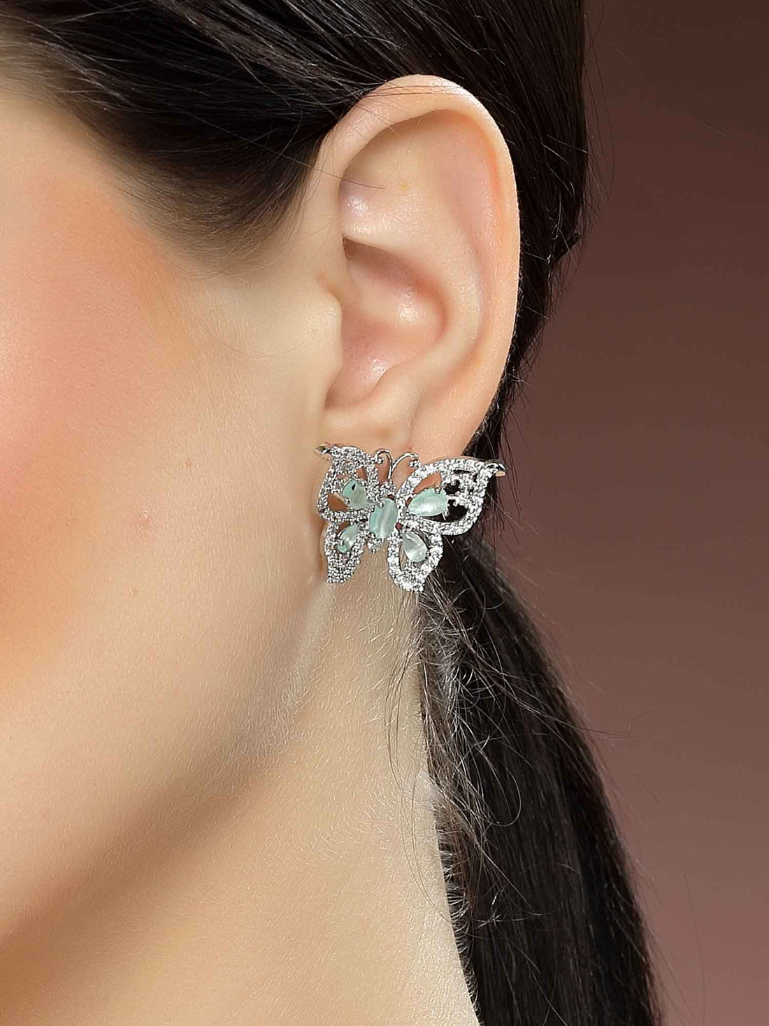 Karatcart Silver Tone Lime Green Butterfly Design Cubic Zirconia Earrings for Women
