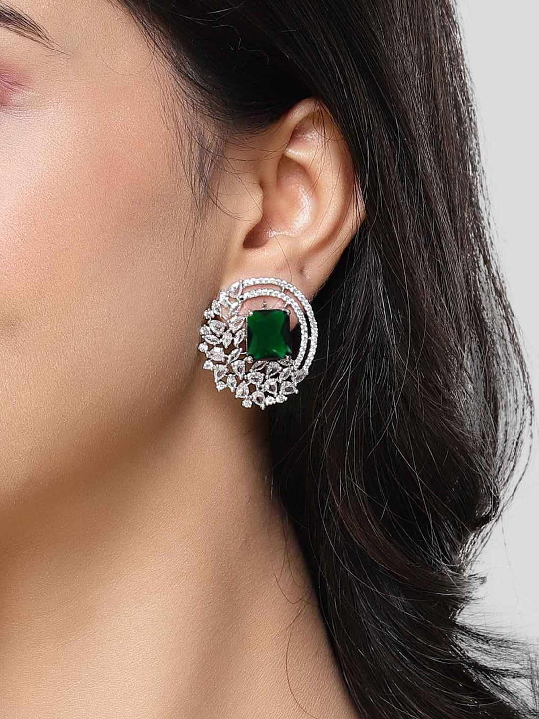 Karatcart Silver Plated Green Cubic Zirconia Stud Earrings for Women