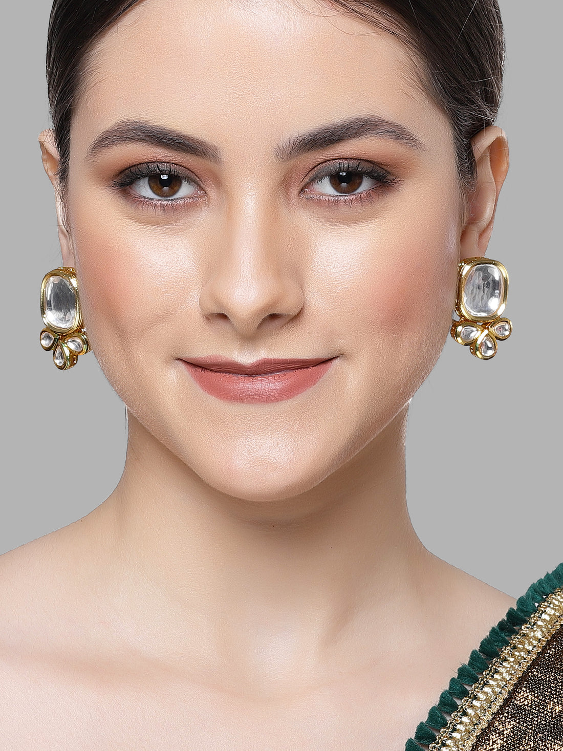 Karatcart Gold Plated Kundan Studded Grey Meena Stud Earrings for Women