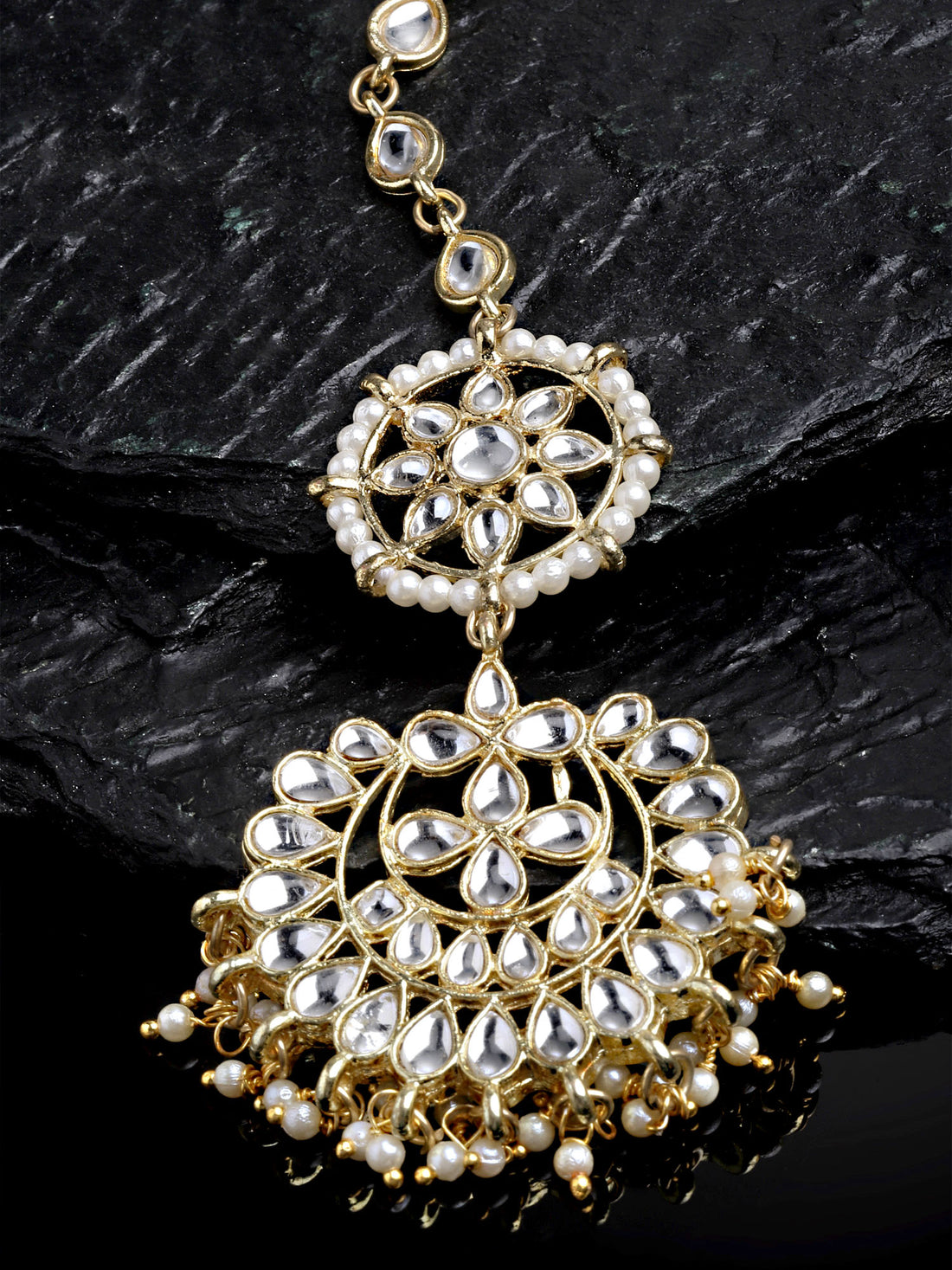Karatcart Gold Plated Floral Handcrafted Kundan Maangtikka for Women