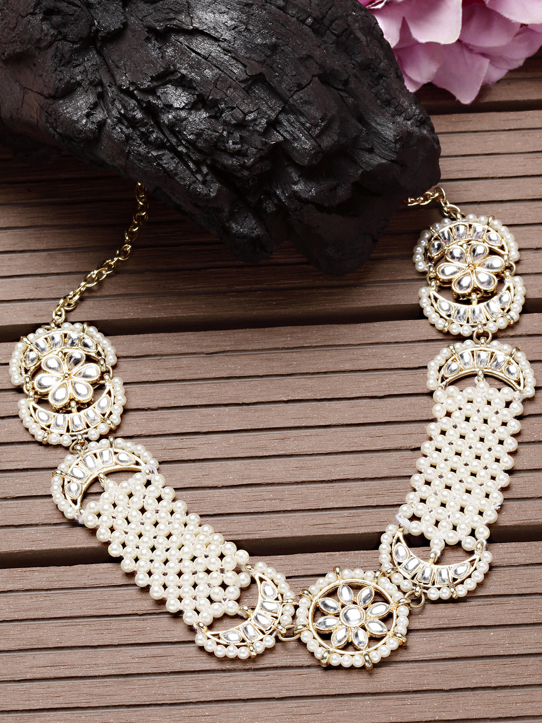Karatcart Gold Plated Pearl Beads Studded Kundan Necklace Set for Women