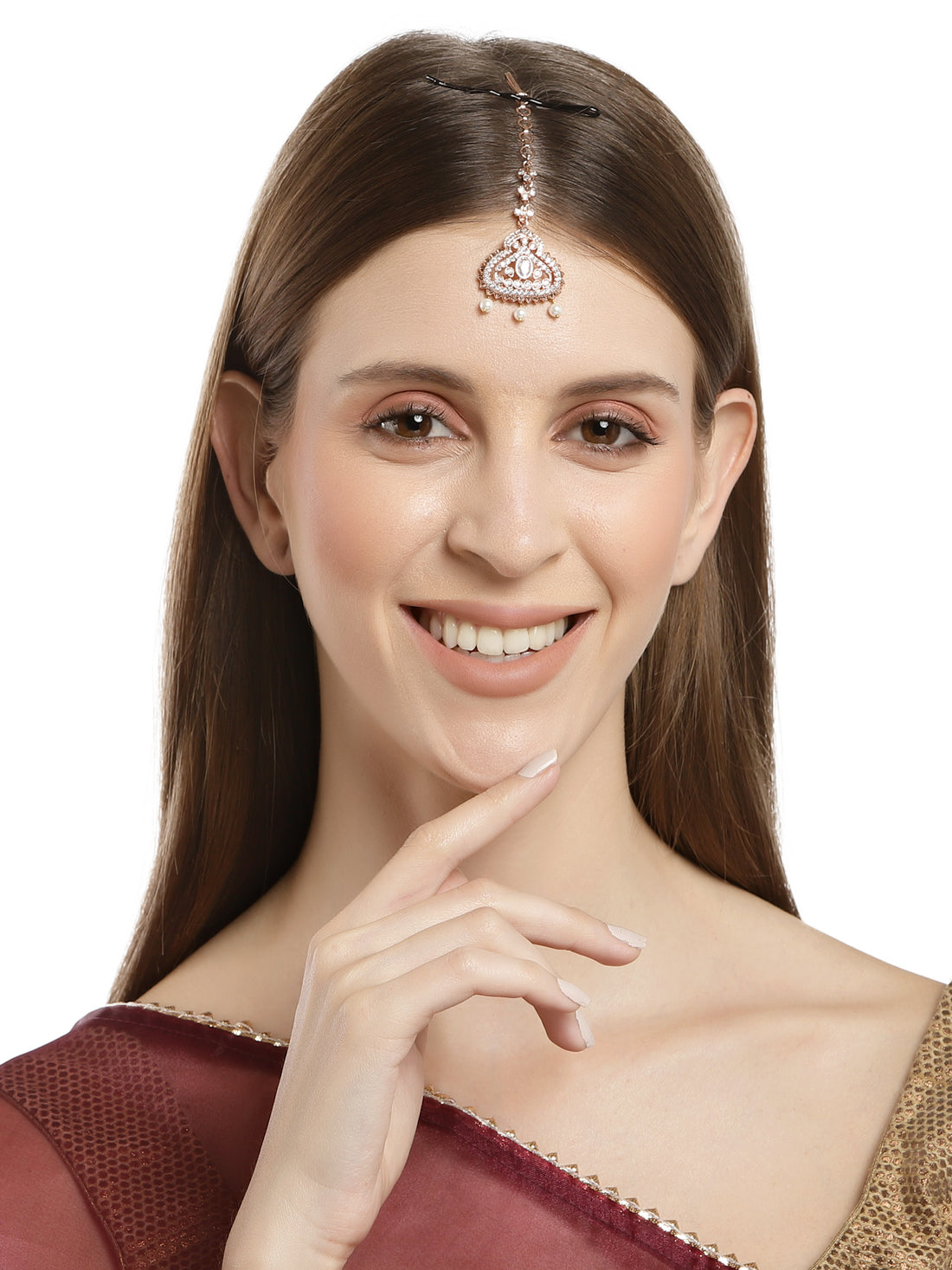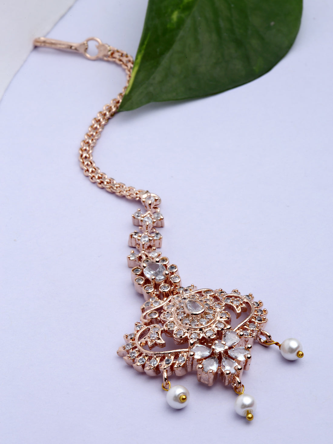 Rose Gold-Plated Cubic Zirconia Studded Maangtikka.