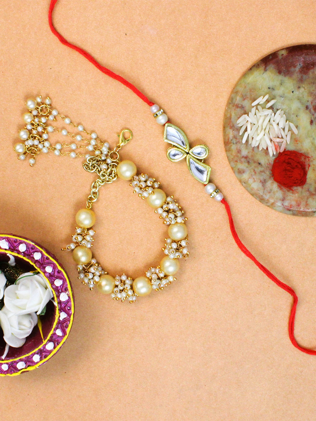 Set of 2 Gold Plated Handmade Kundan Bhaiya Bhabhi Rakhi Combo