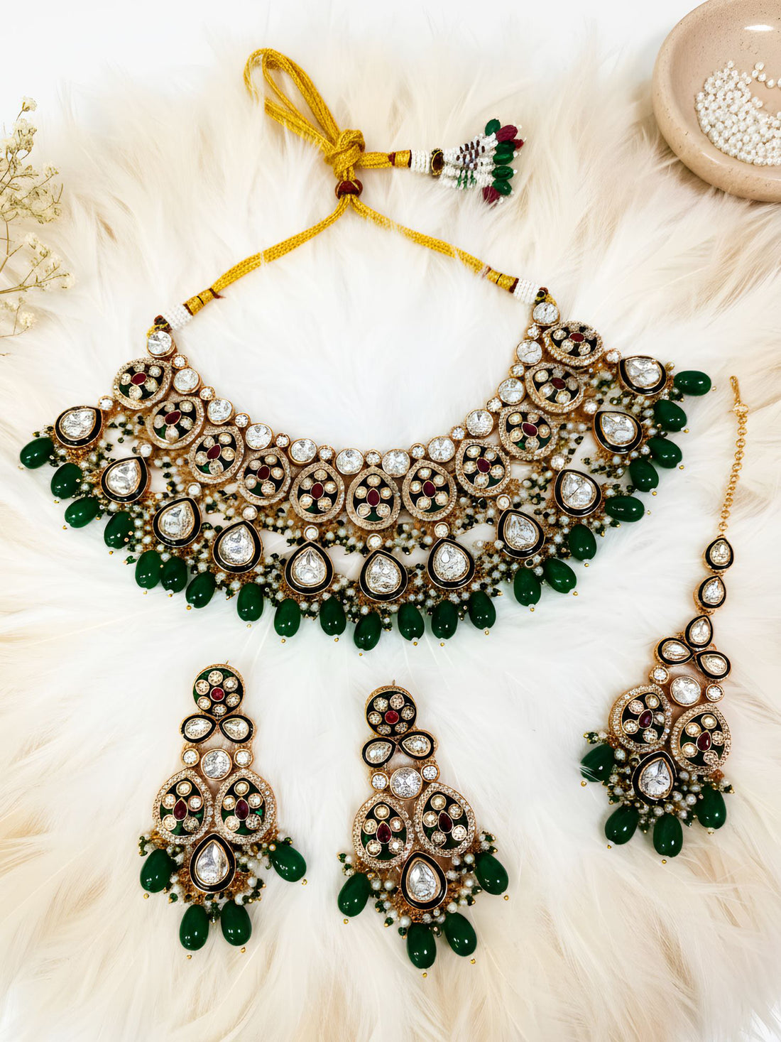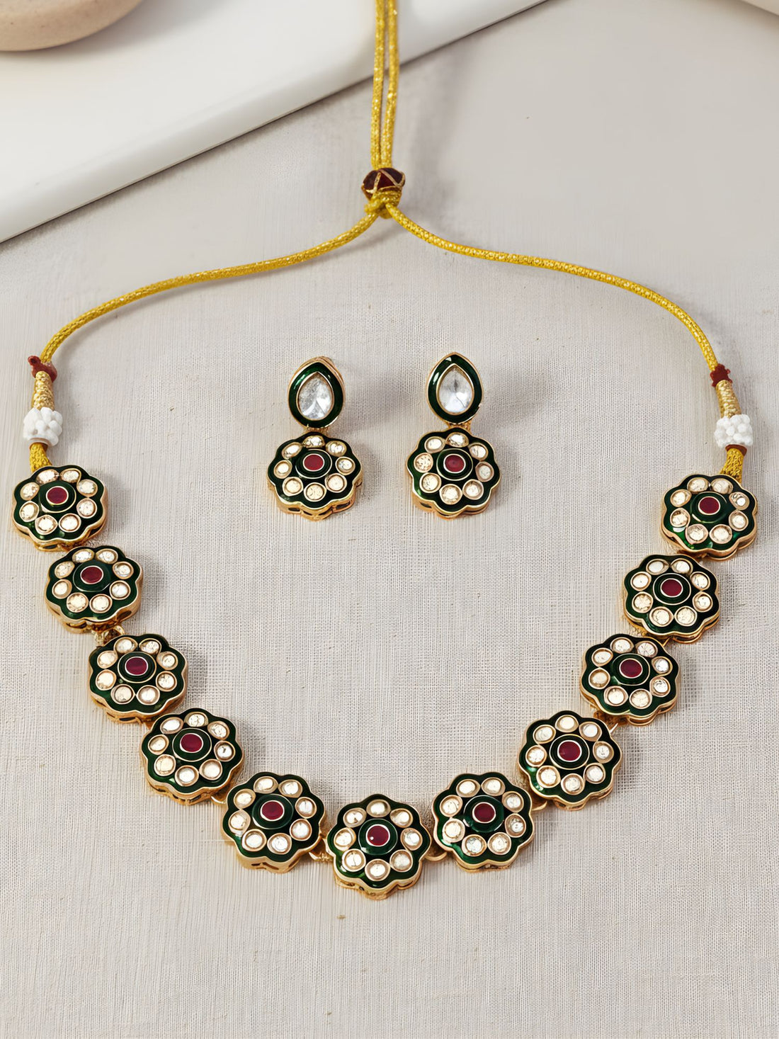 KARATCART Dazzling Green Meena Floral Kundan Gold-Plated Handcrafted Necklace Set for Women