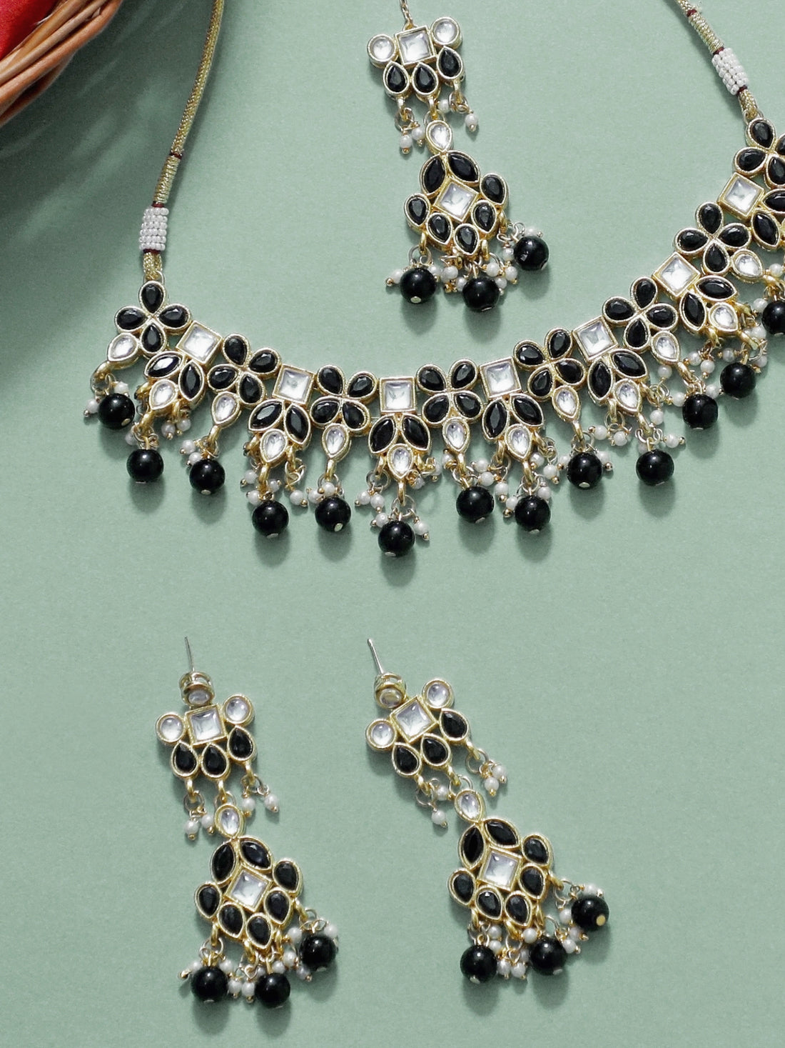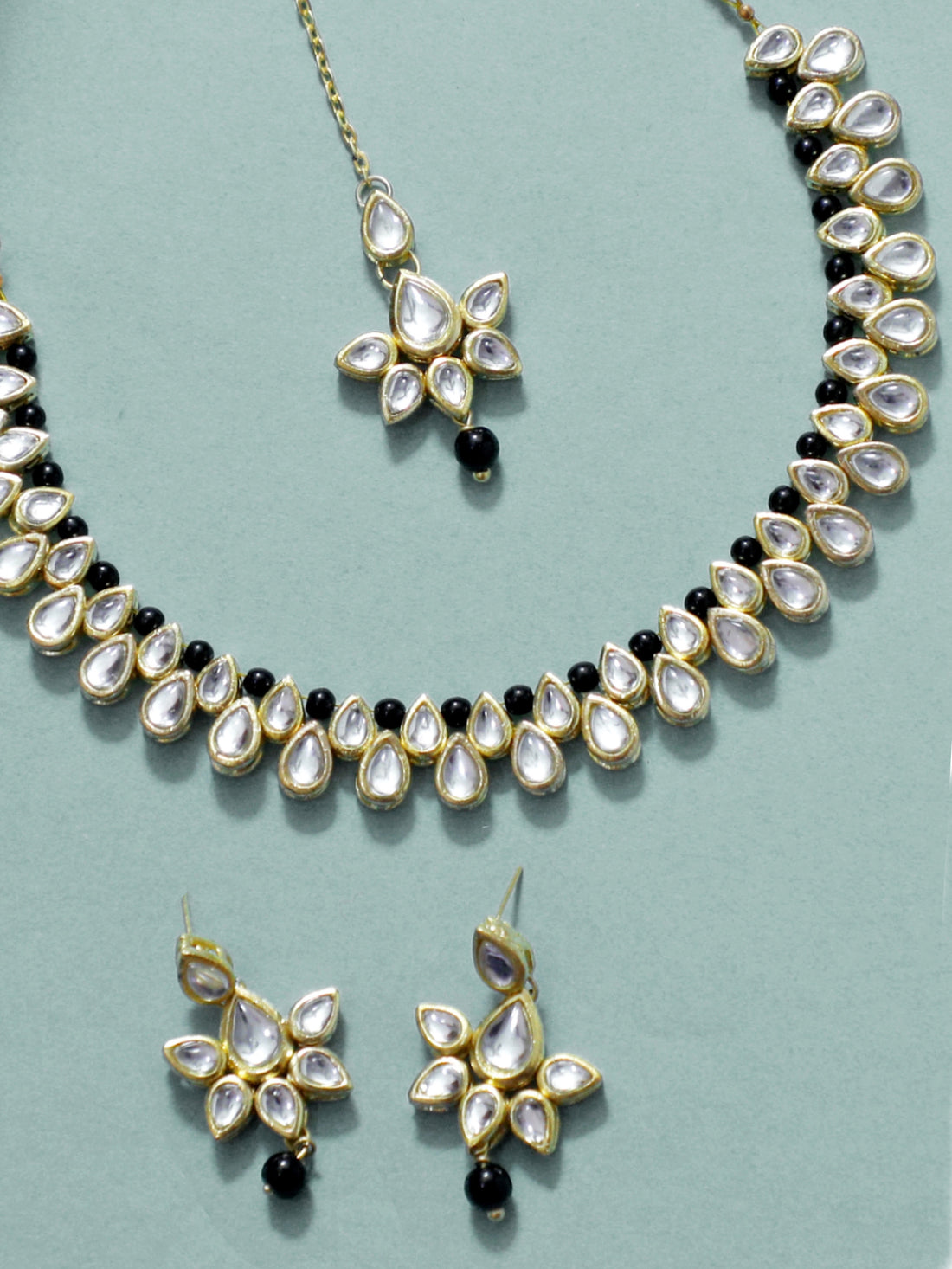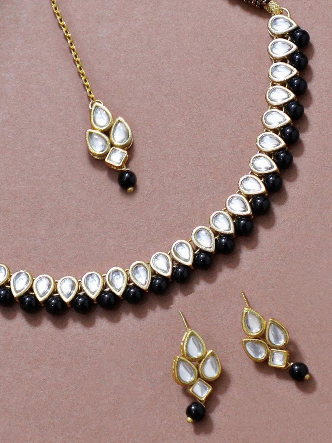 Black Beads Studded Kundan Necklace Set