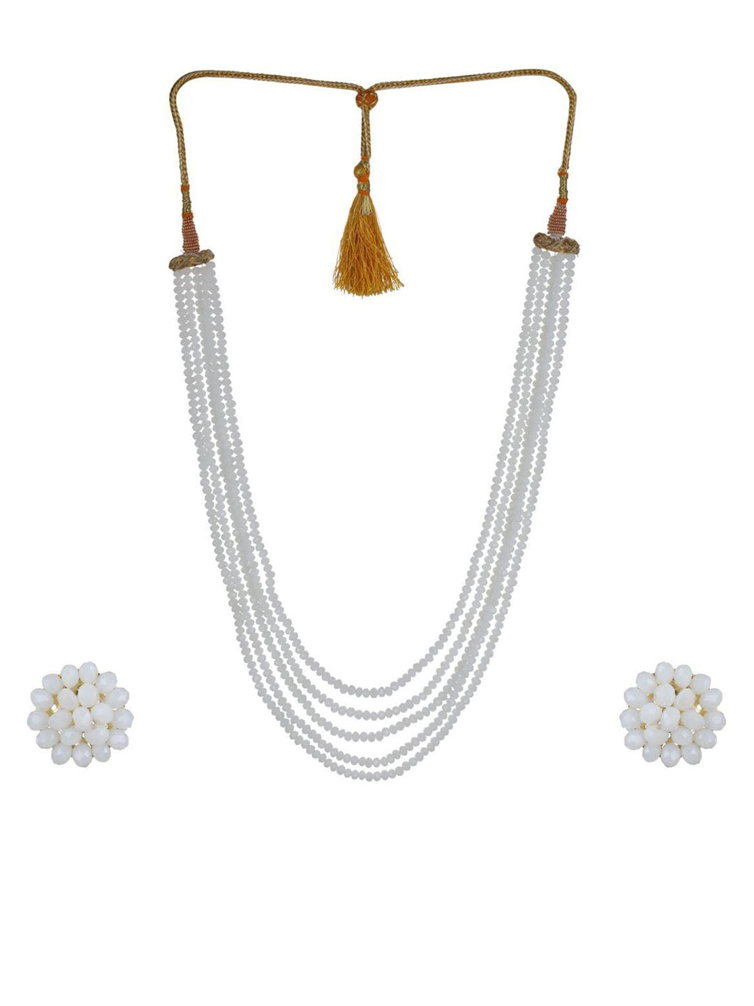 White Crystal Beads Multi-Strand Necklace Set Necklace Length - 18 Inches, Earrings Length - 1.75...