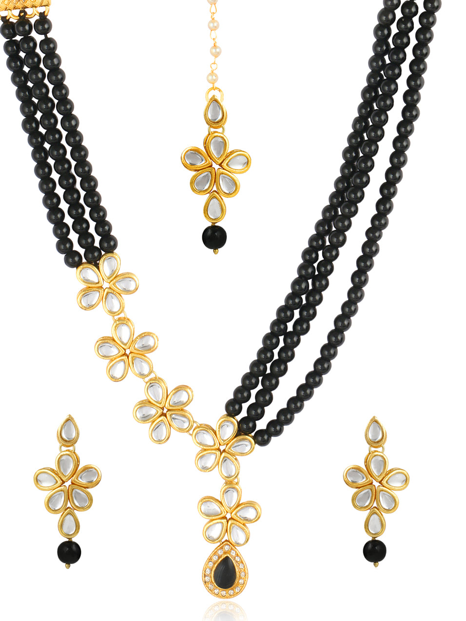 Kundan Gold and Black Necklace Set. Pair it with your Indian attire and stand out...