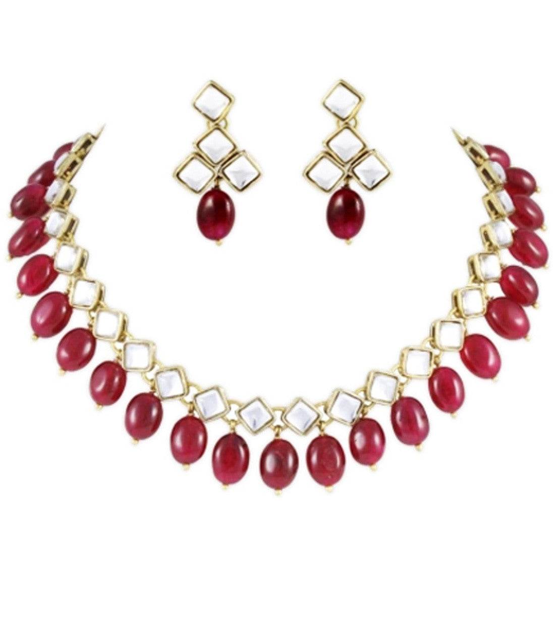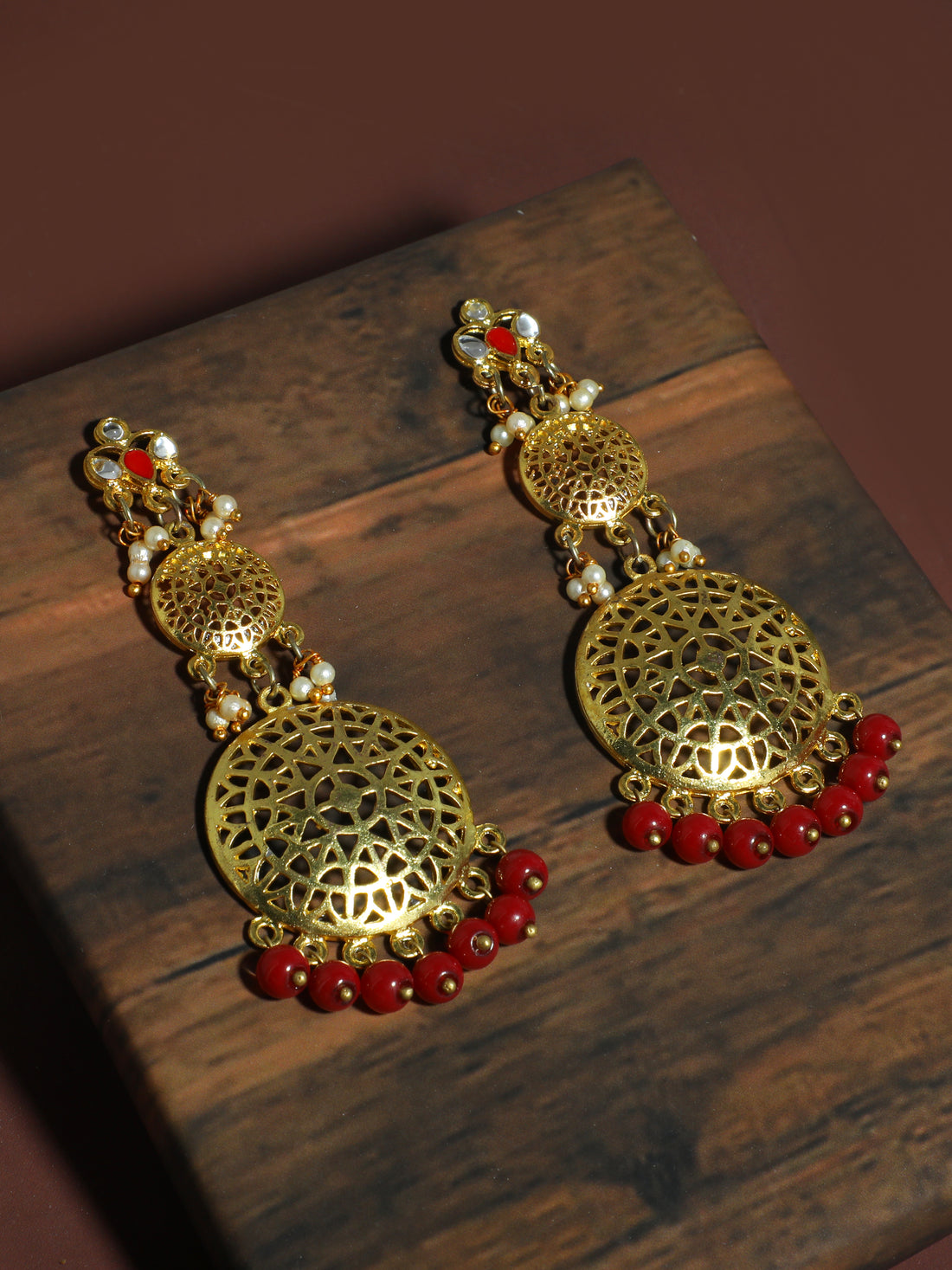 Gold Tone Faux Kundan Red Drops Earrings. This set of earrings can be best paired...