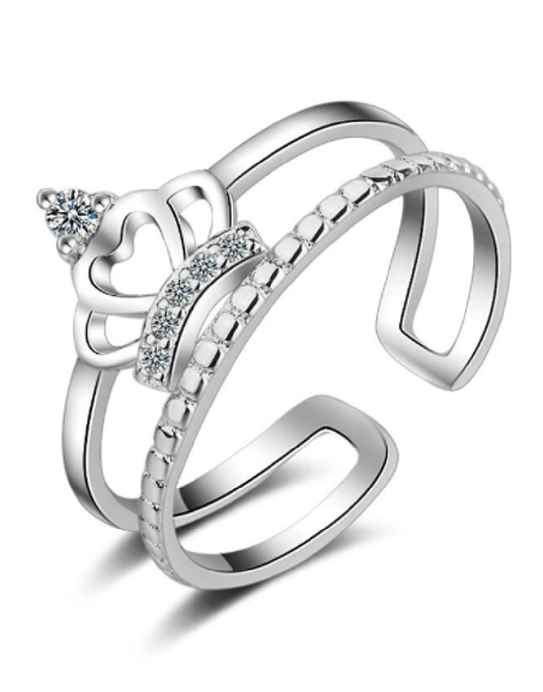 Platinum Plated Elegant Austrian Crystal Crown Ring