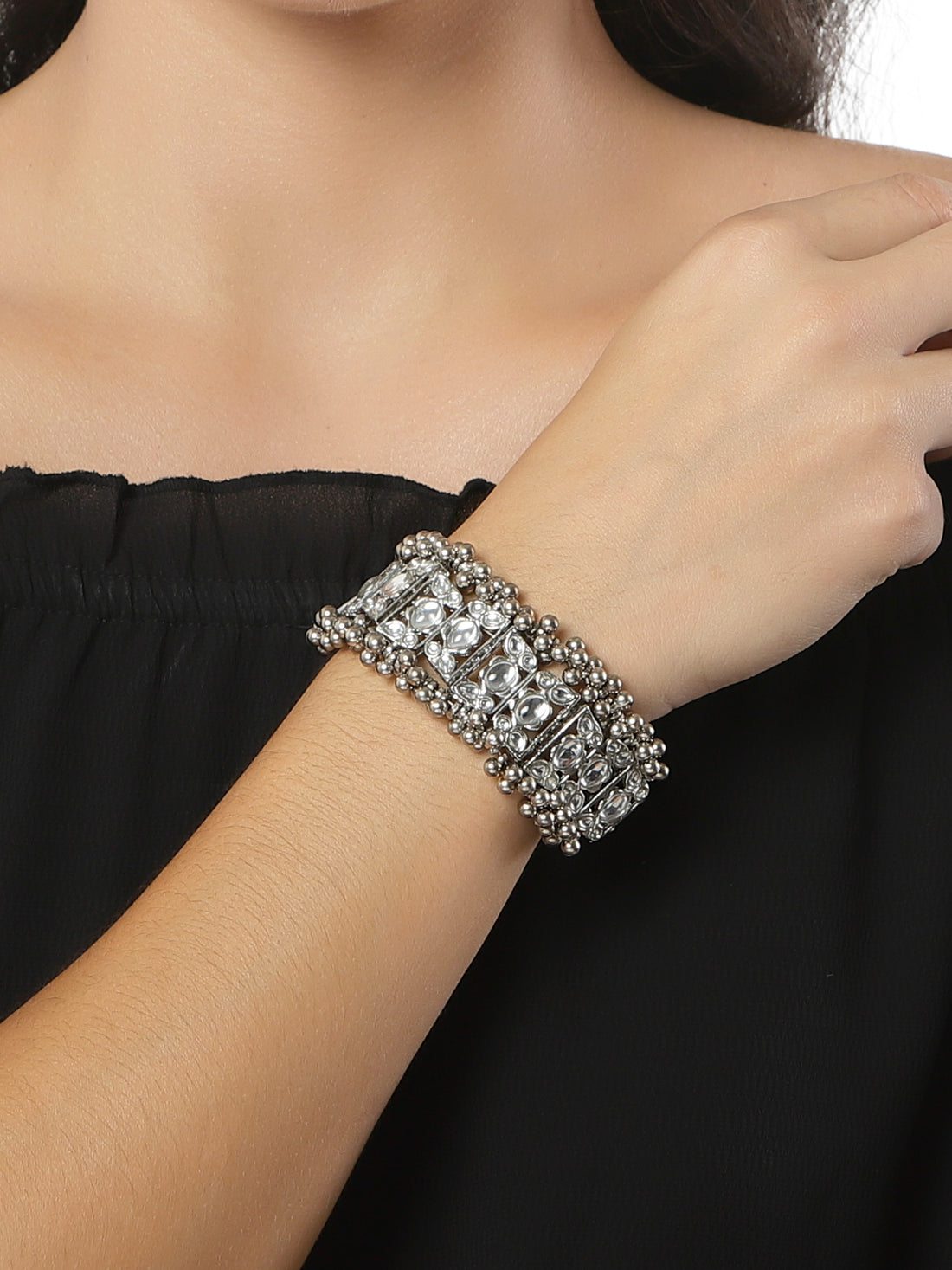 Karatcart Oxidised Silver Handcrafted Silver Ball Studded Bracelet for Women