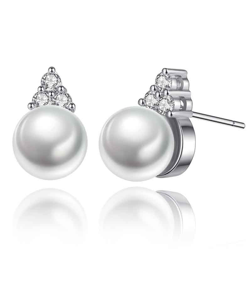 Platinum Plated Austrian Crystal Pearl Stud Earrings